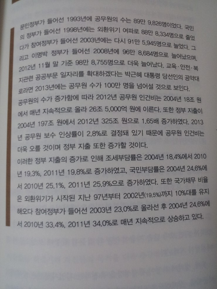 1993 공무원수 899826 1998 888334, 2003 915945(2013 100만돌파) 인건비 연평균 2.8% 상승, 조세부담률 상승