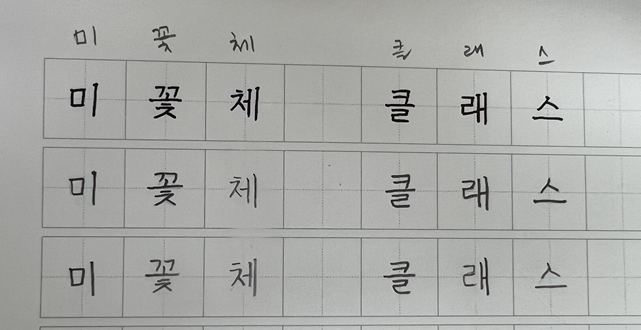 인쇄된 폰트 같은 손글씨의 미꽃체를 노트를 통해서 직접 따라하게 되면서 솔직히 처음엔 '감탄'과 '좌절'을 동시에 느끼게 되었다.