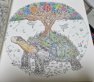 거북이와 새, 나무의 문양을 색칠을 하다 보니,