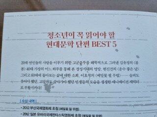소개되는 5편의 소설은 청소년들의 필독서로 꼭 읽어봤으면 한다.