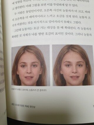 위 사진은 미세하지만 호감가는 표시, 눈동자가 커짐을 느끼고 조금 더 매력적임을 느낄 수 있는 사진이다.