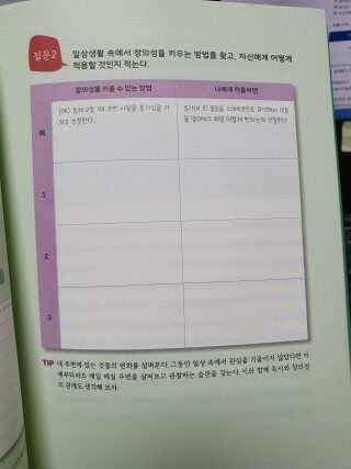 일상생활 속에서 창의성을 키우는 방법을 찾고 자신에게 어떻게 적용할 것인지를 적는다.