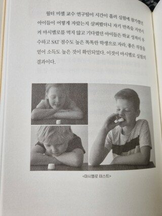 이 부분에서 마시멜로 실험에 대한 설명이 있다.