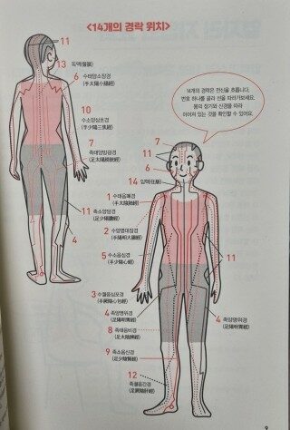 먼저 총 14개의 경락위치를 확인해보고, 이 중 12줄기는 몸의 육장육부와 관련이 되어있다고 한다. 혈자리를 눌러 통증이 느껴진다면 내장 기관에 문제가 있다는 신호라는 것이다.