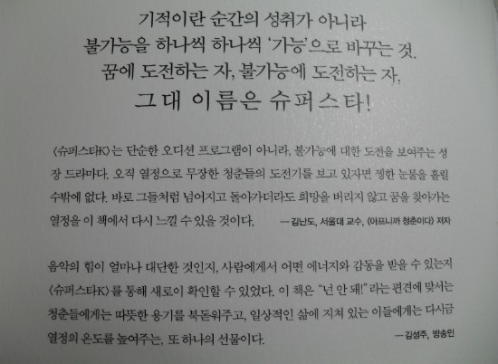 책 제목이 말하는 기적은 슈퍼스타k로 가수의 꿈을 이룬이들은 물론