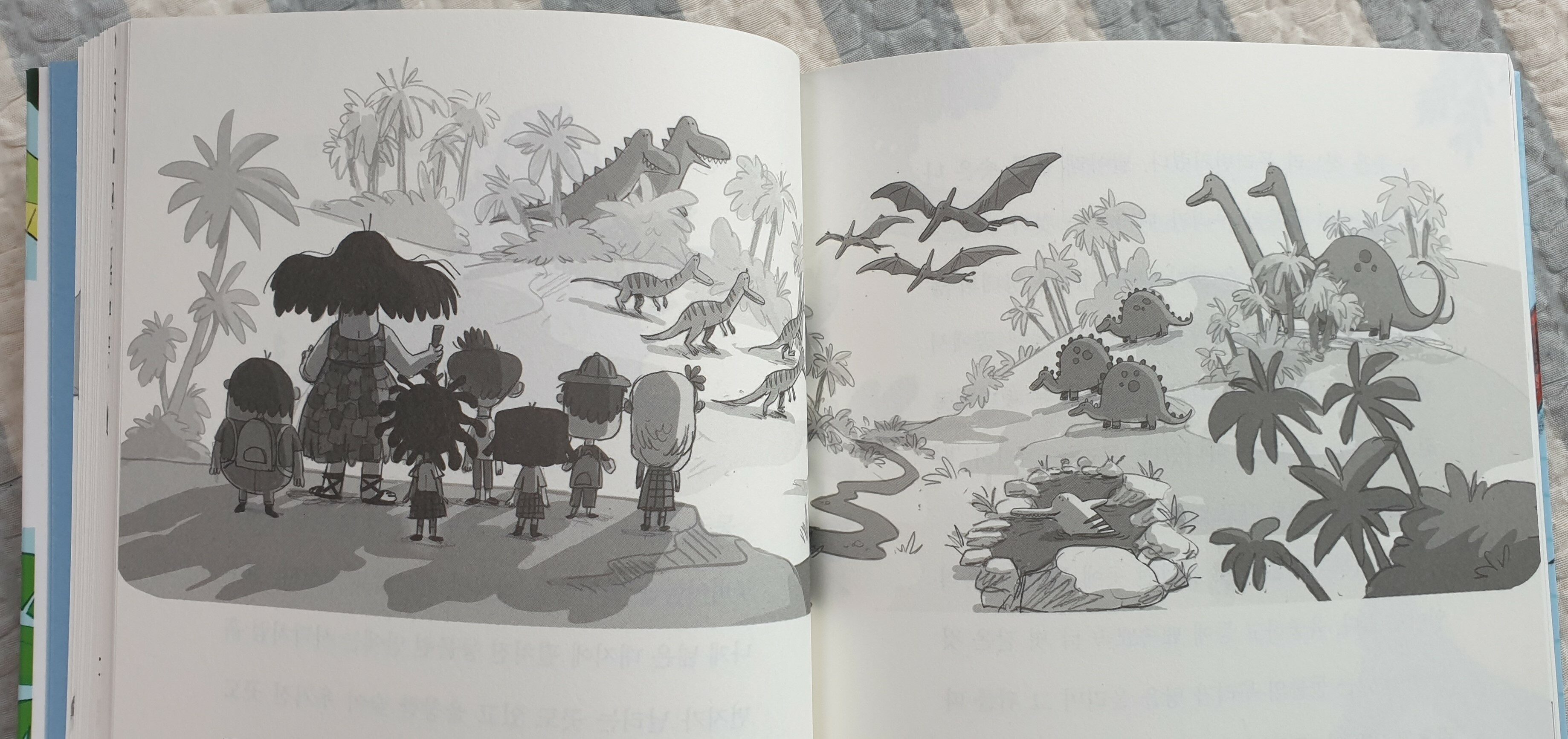 아이들은 본격적으로 흥미진진하게 공룡 구경에 나서게 된다