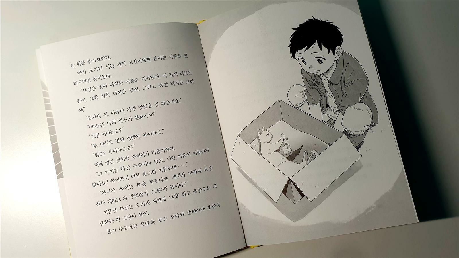 처음에 도야는 고양이랑 사람이 모두 행복한 마음을 갖는다는 의미를 잘 몰랐다