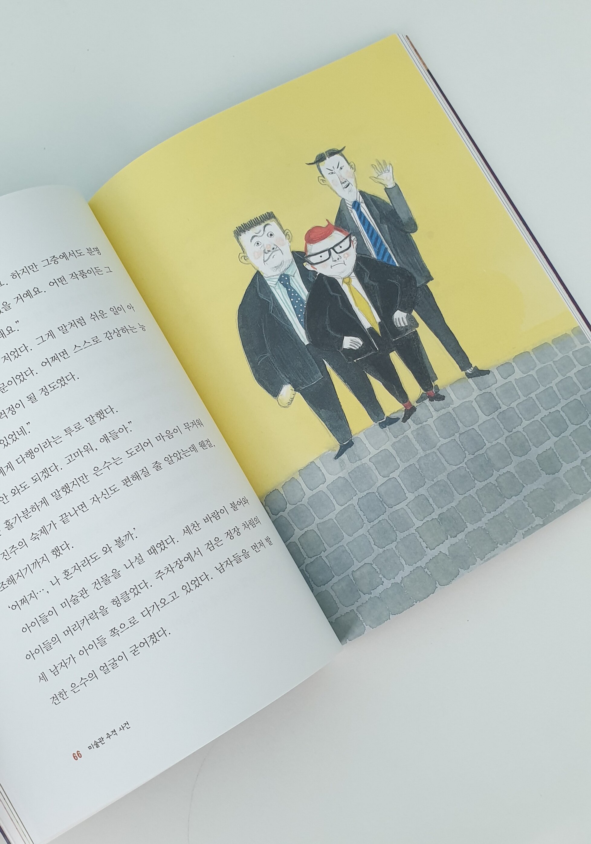 사진으로 구슬을 찾아낸 아이들은 신기해한다 구슬의 주인이 나타날것같아 미술관 안내 데스크에 맡기고 숙제를 하며 미술관 구경을 하고 나오는데 수상한 삼총사 아저씨들이 나타난다