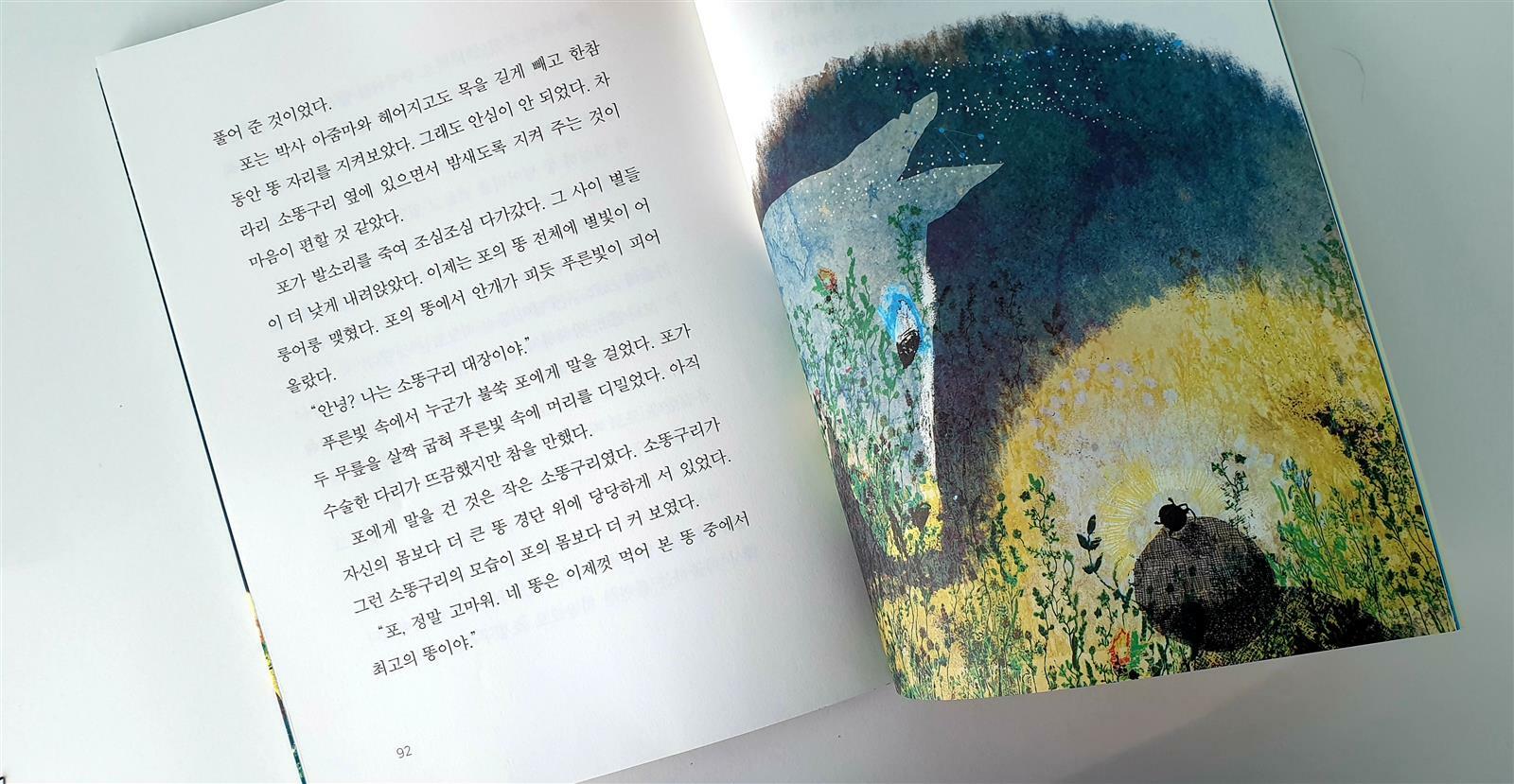 "포의 똥에서는 햇볕 냄새가 나. 아주 잘 마른 풀 냄새 말이야. 저것 봐. 똥 모양도 얼마나 예뻐. 되지도 질지도 않고 딱 좋아"(p32)