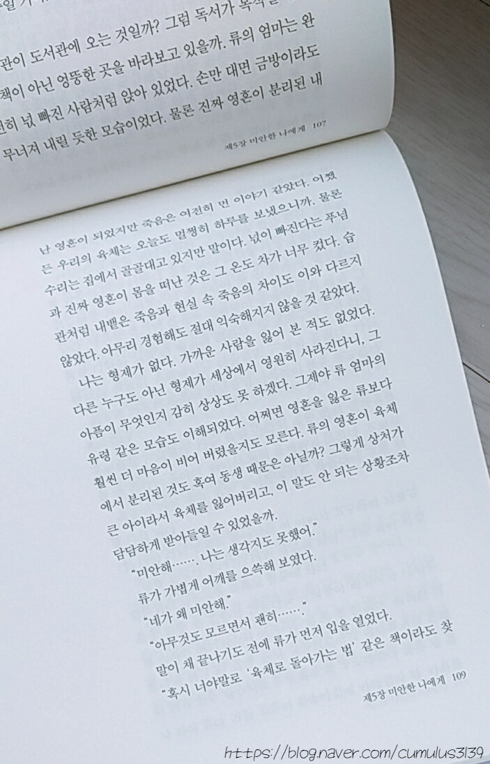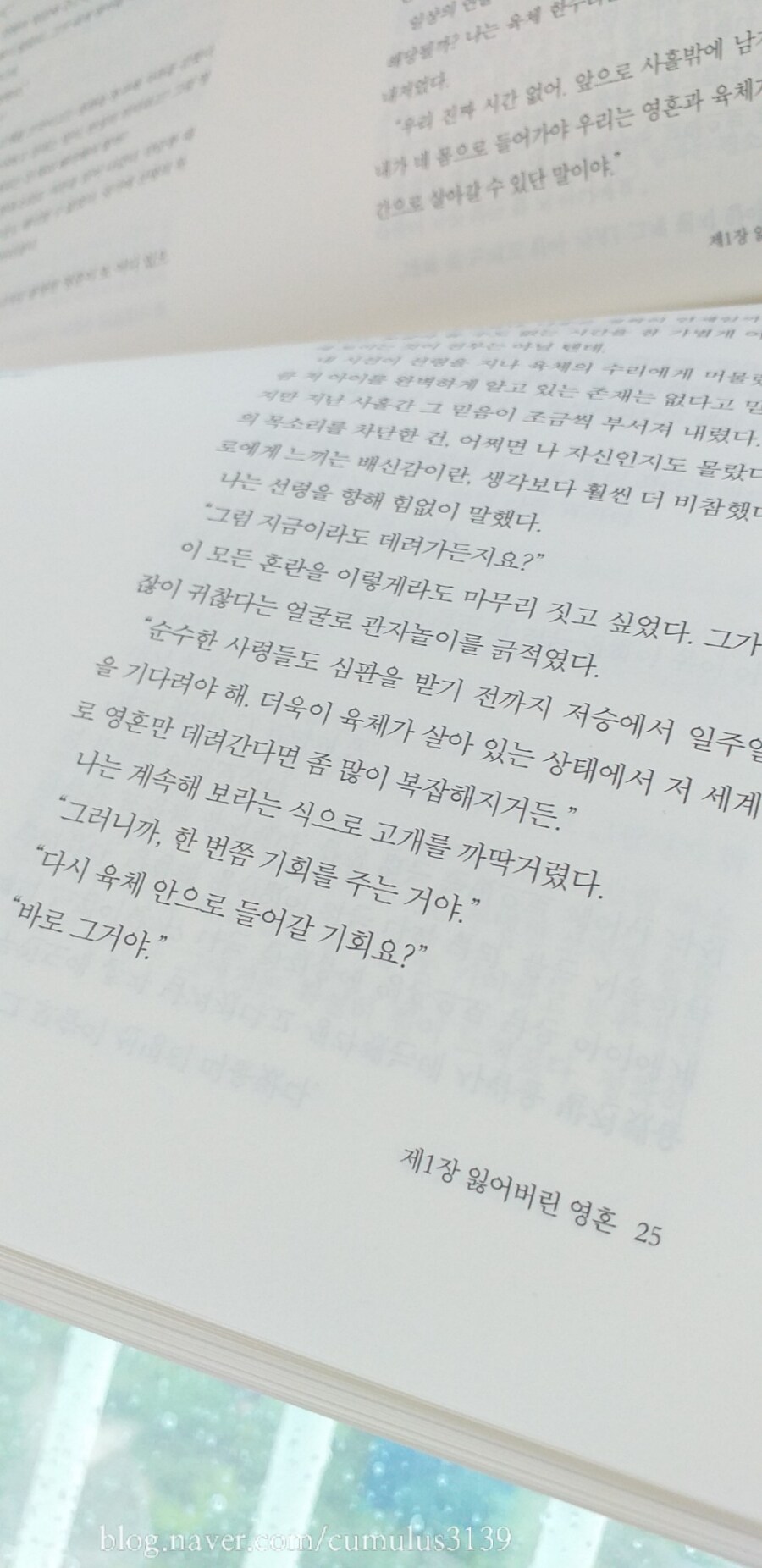 육체에서 쫓겨난 (?) 영혼이라니... 처음이었다. 이 책을 딱 봤을 때 대본집이라길래 대본으로 이루어진 책인줄 알았다. 그런데 아니었다. 그냥 글이 2개로 나뉘어? 있었다.