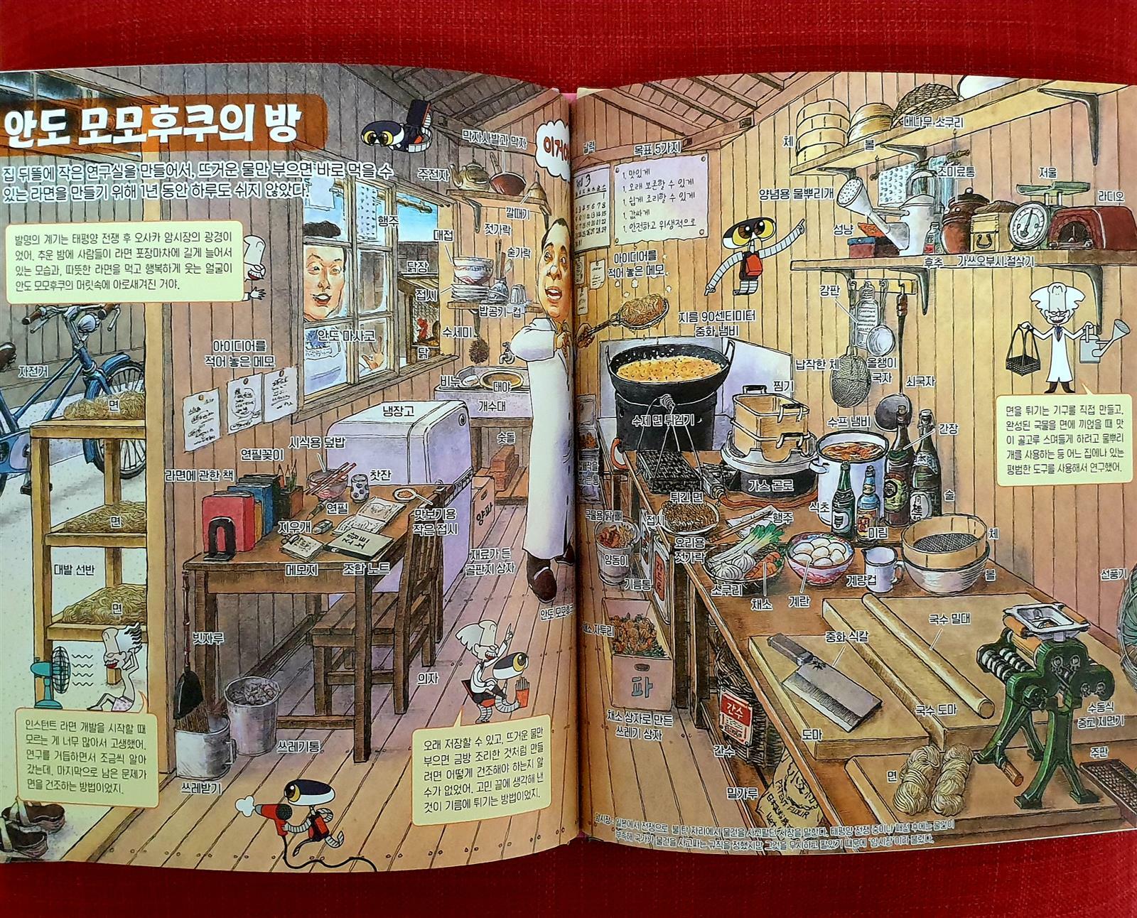 그 안에서 뜨거운 물만 부으면 바로 먹을 수 있는 라면이 만들어졌다 라면은 먹어보지 못한 사람이 없을 정도로 일상에서 빠지지 않는 음식이다 저녁 식사에 나온 튀김이 발명의 씨앗이 되어 1년이라는 시간 동안 반복된 테스트를 하며 맛있는 라면이 탄생되었다 안도 모모후쿠의 라면 발명을 계기로 사람들의 입맛을 다양하게 즐길 수 있도록 많은 종류의 라면이 쏟아지니 하나의 발명을 시작으로 또 다른 발명이 나올 수 있구나란 생각이 든다