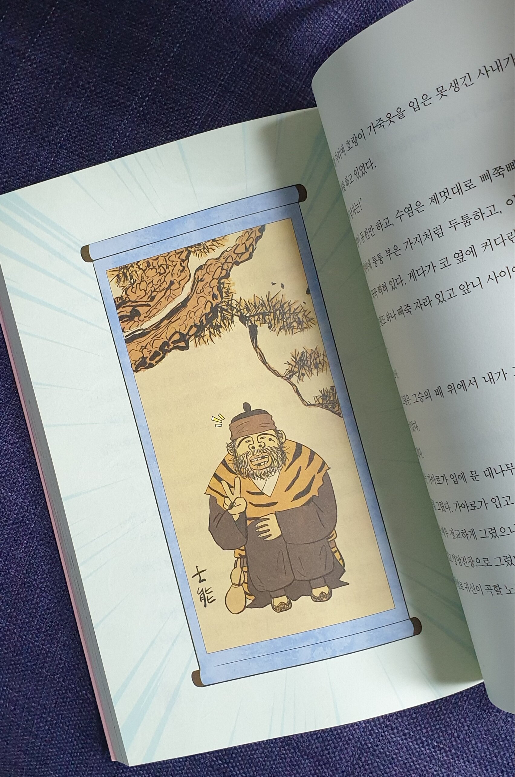 <송하맹호도>를 훔쳐서 호랑이 그림을 자기 얼굴로 뒤바꿔 놓고