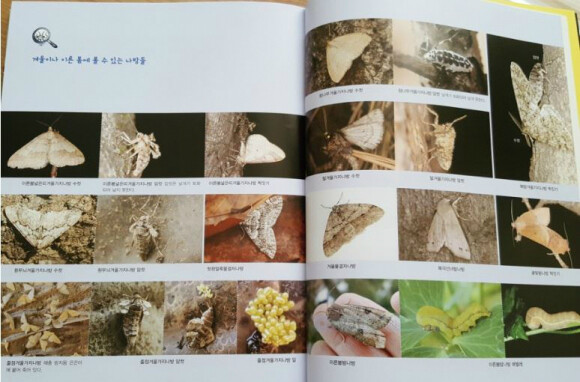 나방과 나비는 모두 624종(나방은 600종, 나비는 24종)인데, 몇몇 종의 애벌레도 함께 소개되어 있어요