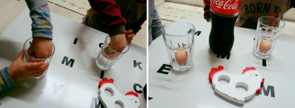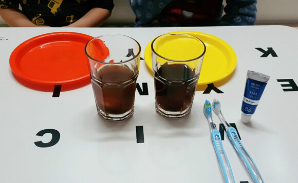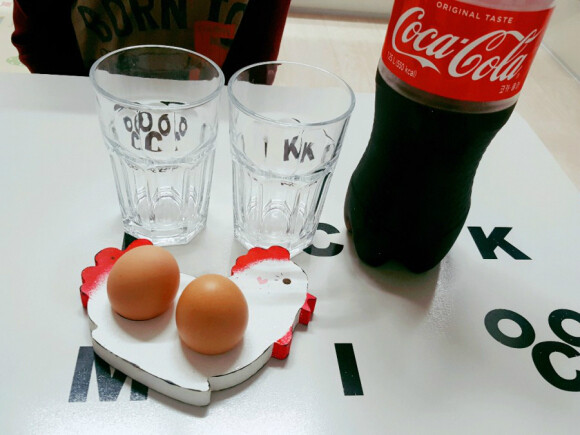 삶은 달걀, 컵, 콜라, 치약, 칫솔
