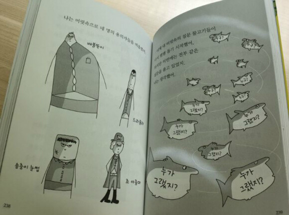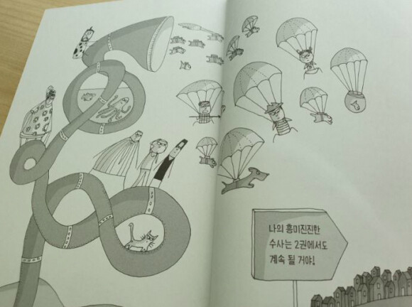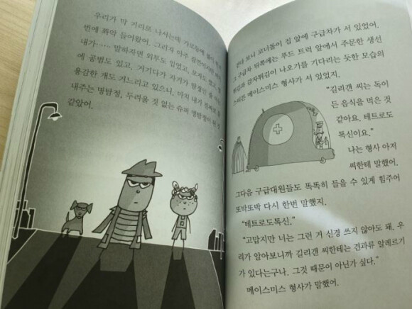 1권에서는 로리가 아빠를 찾는 이야기보다 음식의 독을 넣은 범인을 추리하는 과정이 주된 내용이다. 저학년이 읽기엔 꽤 도톰한 책이지만 누가 범인일까 추리하며 읽는 재미가 있어 술술 읽히는 책이었다. 어른들의 겉모습 뒤에 숨겨진 진실과 아이들의 당차고 순수한 모습, 그리고 예상 밖 범인의 실체 등 한 권의 책에는 재밌고 흥미로운 이야기로 가득 차있다. 그리고 이 책은 그림 또한 볼거리였는데, 귀엽고 유쾌한 그림 덕분에 더 재밌게 읽을 수 있는 책이었다.