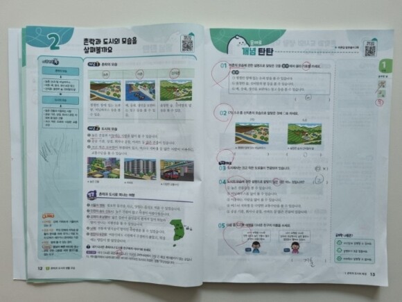 4학년 2학기 사회 과목에서는 '우리 지역의 다양한 모습'에 대해 배워요. 먼저 1단원에서는 촌락과 도시의 생활 모습에 대하여 학습하게 되는데 7일차까지는 촌락과 도시의 특징에 대해 공부해 보았어요.