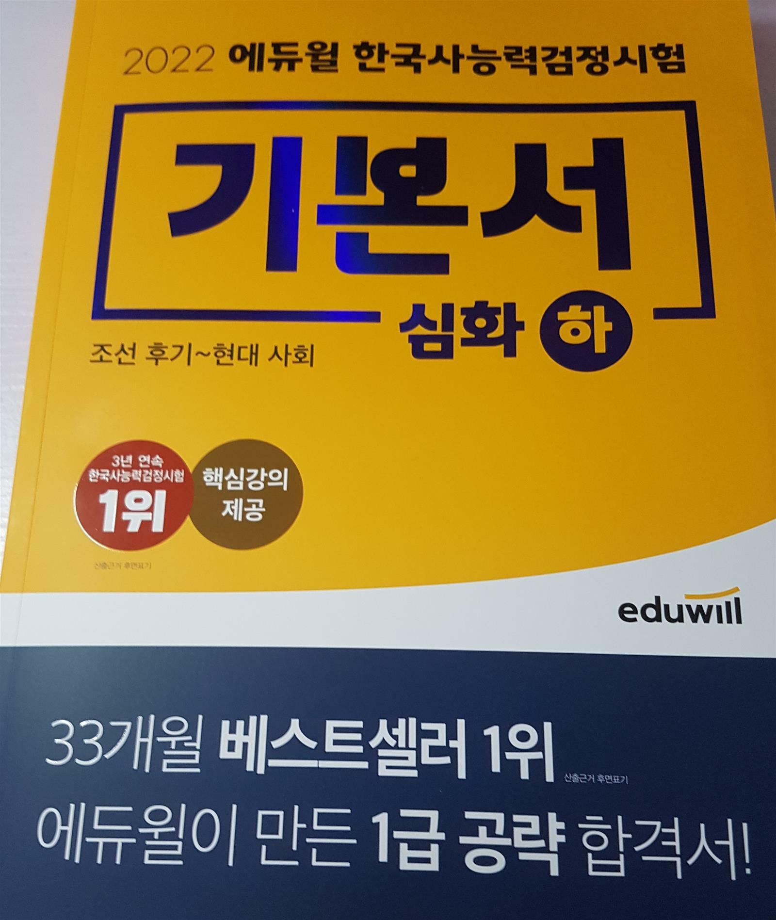 2022 에듀윌 한국사 능력 검정시험 기본서 심화(1,2,3급) 하 - 조선 후기~현대 사회 | 핵심강의 무료 제공 2022 에듀윌 한국사 능력 검정시험