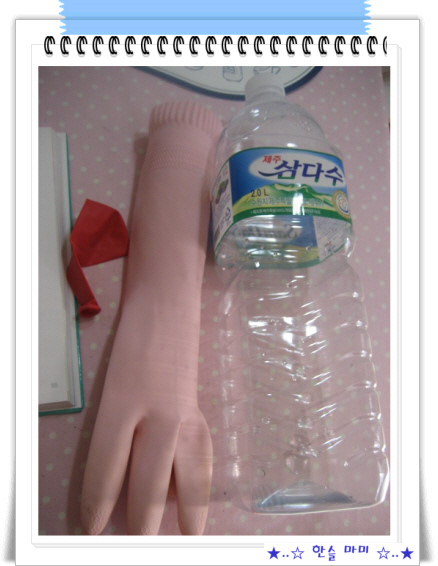 페티병 잘르고 풍선을 입구에 넣고 실험에 방해되는 라벨 없애주고  고무장갑 끼워주면 완성...!!