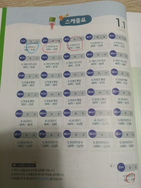 숫자 쓰는 순서도 나와 있어서