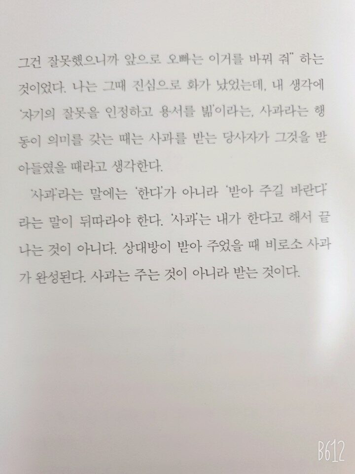 '사과한다'는 말은 내가 한다고 해서 끝나는 것이 아니라 상대방이 받아주었을 때 비로소 사과가 완성된다.