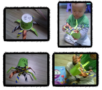 종이컵에 색종이 붙여 다리를 달았더니 멋진 문어가 되기도 하구요