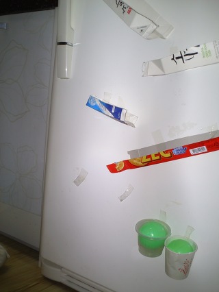 냉장고에 붙여서 공이 굴러 내려오는 길을 만들어 주기도 하고