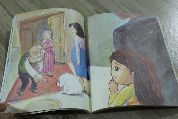 작고 하얀 강아지를 만난 수진이와 아름이는 강아지를 품에 안아 보니 그냥 두고 갈 수가 없었지요