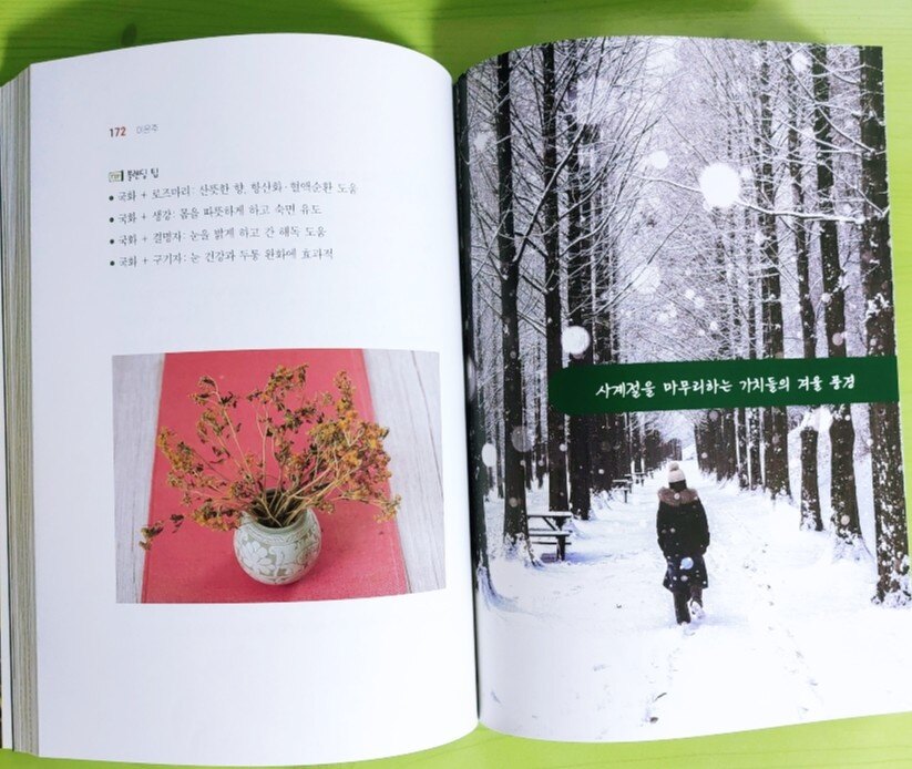 겨울이 되니 기관지에 좋은 차와 건조해진 피부에 좋은 차에 관심이 있었는데 책을 읽으면서 몰랐던 차들도 많이 배웠고 가족들마다 몸에 맞는 차를 고를 수 있어서 도움이 되었습니다