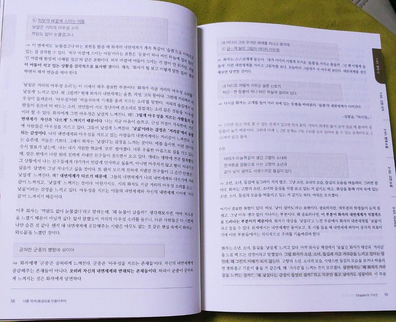 놓치고 있던 부분들을 깨달으며 겉으로만 하는 판단이 아닌 화자의 내면세계를 이해하며 내가 한 해석과 저자의 해석을 비교해 보고 잘못 해석된 부분을 고치며 제대로 된 공부를 합니다
