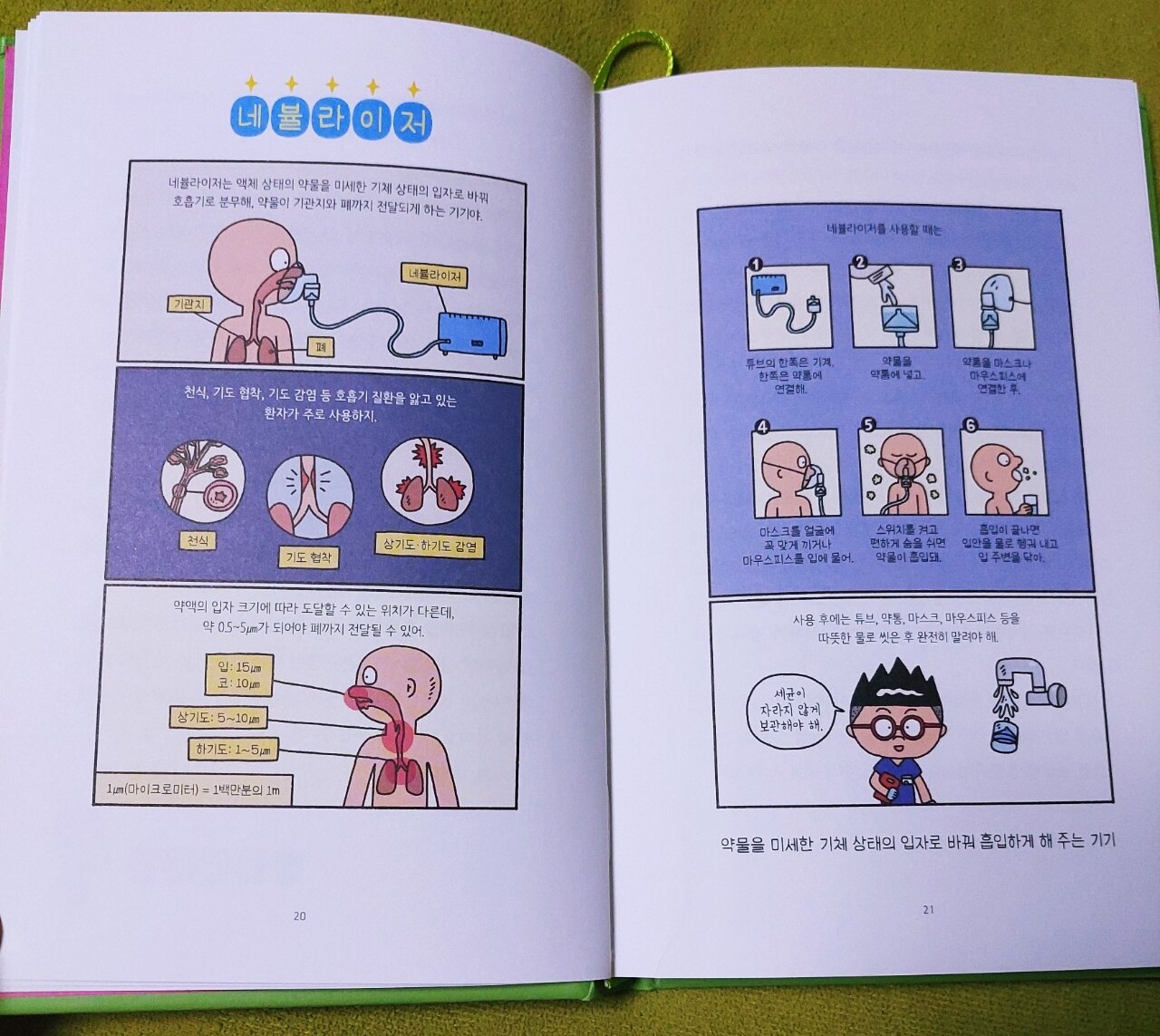아이들에게 생소한 의학 용어들을 이해하기 쉽게 그림과 함께 보여주며 설명해 줍니다