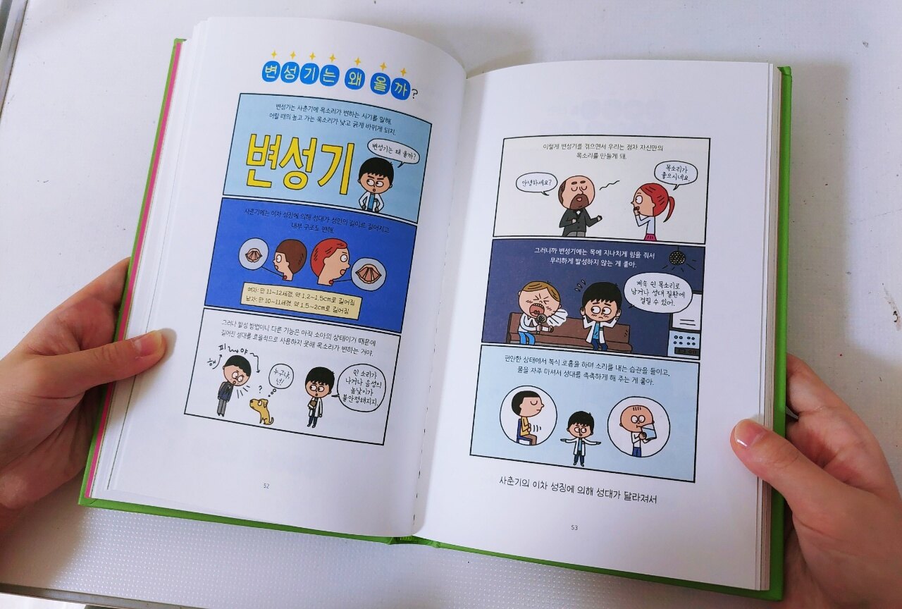 변성기에 대해 아이가 인터넷을 검색했을 때는 설명이 어려웠는데 "의사 어벤저스" 책은 쉽고 재밌다며 변성기에 대해 올바르게 이해하고 배웠습니다