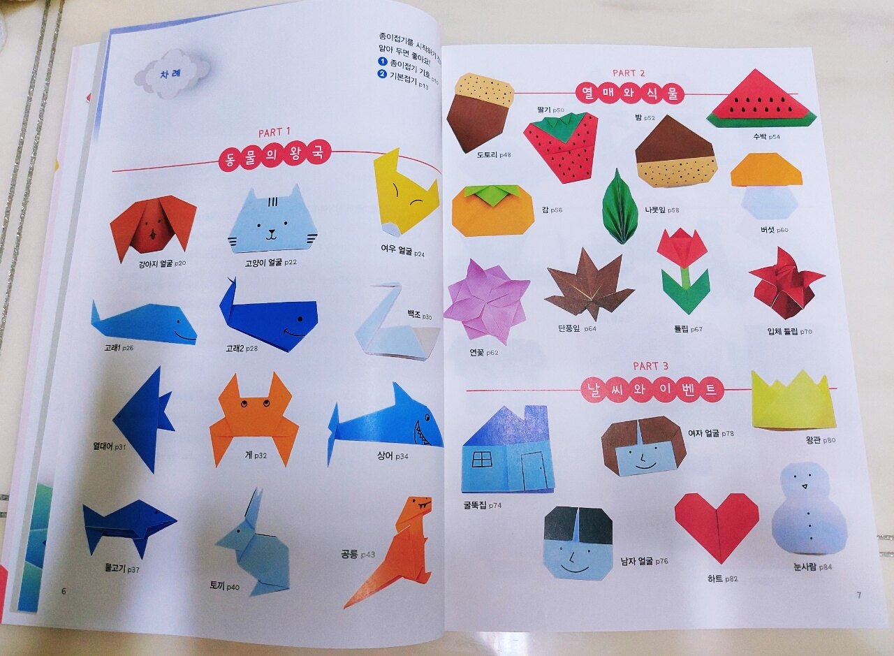 알차고 재밌는 구성으로 아이들의 눈을 사로잡은 종이접기 작품들은 색상도 예쁘고 귀여워서 아이들이 만들고 싶게 만듭니다