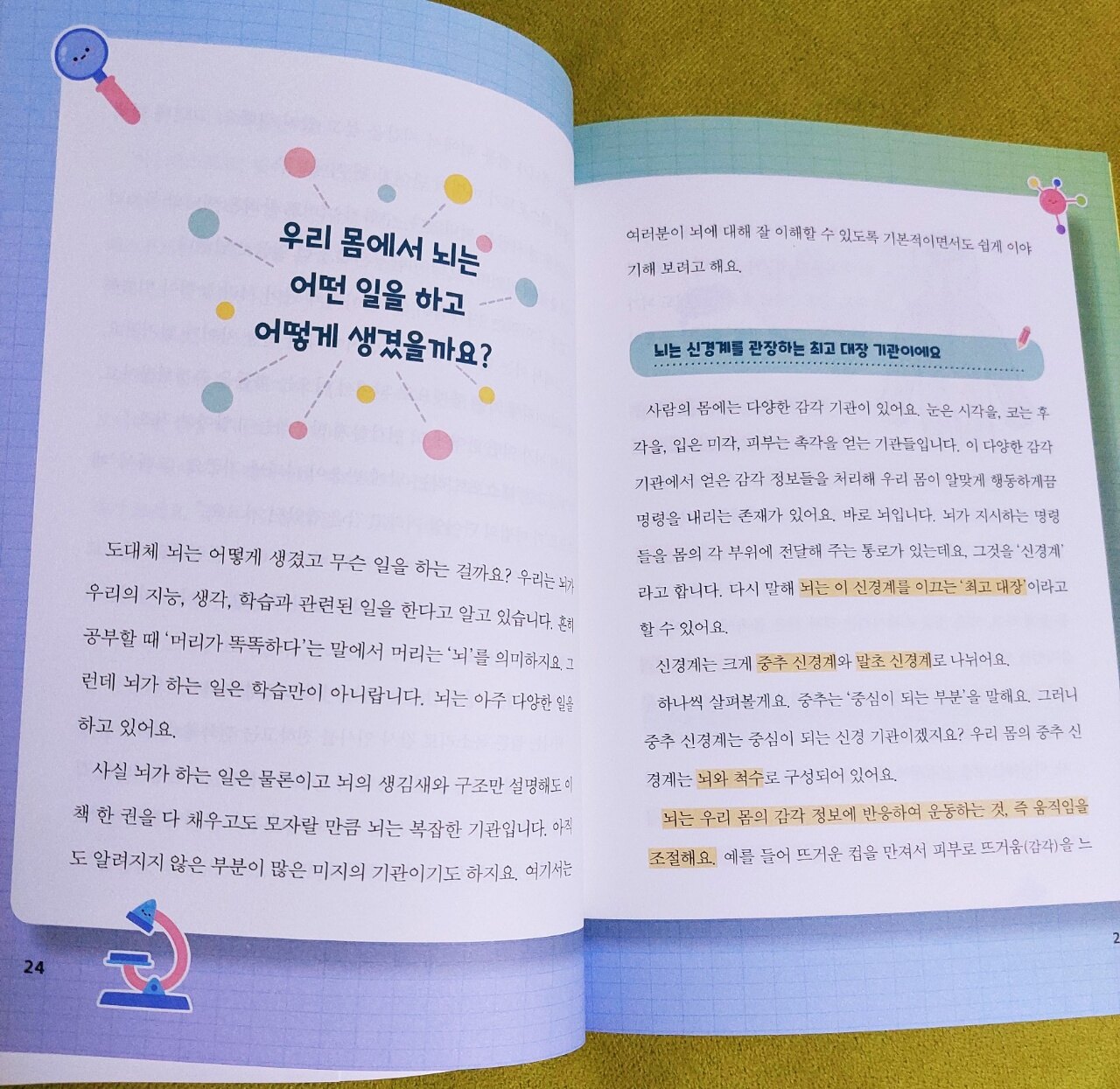 인공지능 시대에 맞춰 아이들이 미래를 향해 성장하며 반드시 배우고 이해해야 하는 분야가 뇌 과학입니다 지금 아이들이 어른이 되었을 때 직업에 상당한 변화가 올 것이기에 그에 맞춰 꿈을 키우고 나아가야 합니다 요즘 뇌 과학에 관심을 가지고 관련 책들을 읽다 보면 우리의 뇌가 상당 부분 놀랍습니다 뇌를 이해하고 알아야 뇌의 무한한 가능성을 이용한 다양한 분야의 과학, 의학 발전이 가능할 것입니다 아이들이 뇌 과학에 관심을 가지고 흥미롭게 배울 수 있게 이 책을 선택했습니다 "미래 과학의 필수 과목, 어린이를 위한 뇌 과학 이야기" 책은 아이들이 뇌 과학을 쉽고 재미있게 배울 수 있도록 브레인 탐정이라는 이야기로 호기심을 자극하고 집중하며 읽을 수 있게 해줍니다 브레인 탐정과 인공지능 비서 시냅스의 기상천외한 사건 수사로 이야기 구성이 재미있습니다 브레인탐정은 인간의 뇌를 이용하여 사건을 해결 합니다 이야기를 통해 뇌의 구조와 특징, 뇌가 하는 일 등 뇌에 관해 설명을 해주는데 어렵지 않은 설명으로 아이들도 이해하기가 쉽습니다 뇌파로 전반적인 뇌의 활동이나 이상을 파악하며 뇌가 하는 다양한 능력과 기능을 끊임없이 연구하는 뇌 과학은 미래를 위한 중요한 학문입니다 책을 읽고 저도 많이 배웠습니다 불가능할 것 같은 일들이 뇌 과학 연구 성과에 따라 놀라운 결과를 가져올 미래가 많이 기대가 됩니다 전신마비 환자도 의사소통이 가능하고 치매 환자도 완쾌되는 날이 오길 바랍니다 아이들과 읽으며 뇌 과학에 대해 더 많은 관심을 가지게 되었습니다 이 책을 읽어보시길 추천합니다 출판사로부터 도서를 제공받아 작성한 솔직 후기입니다