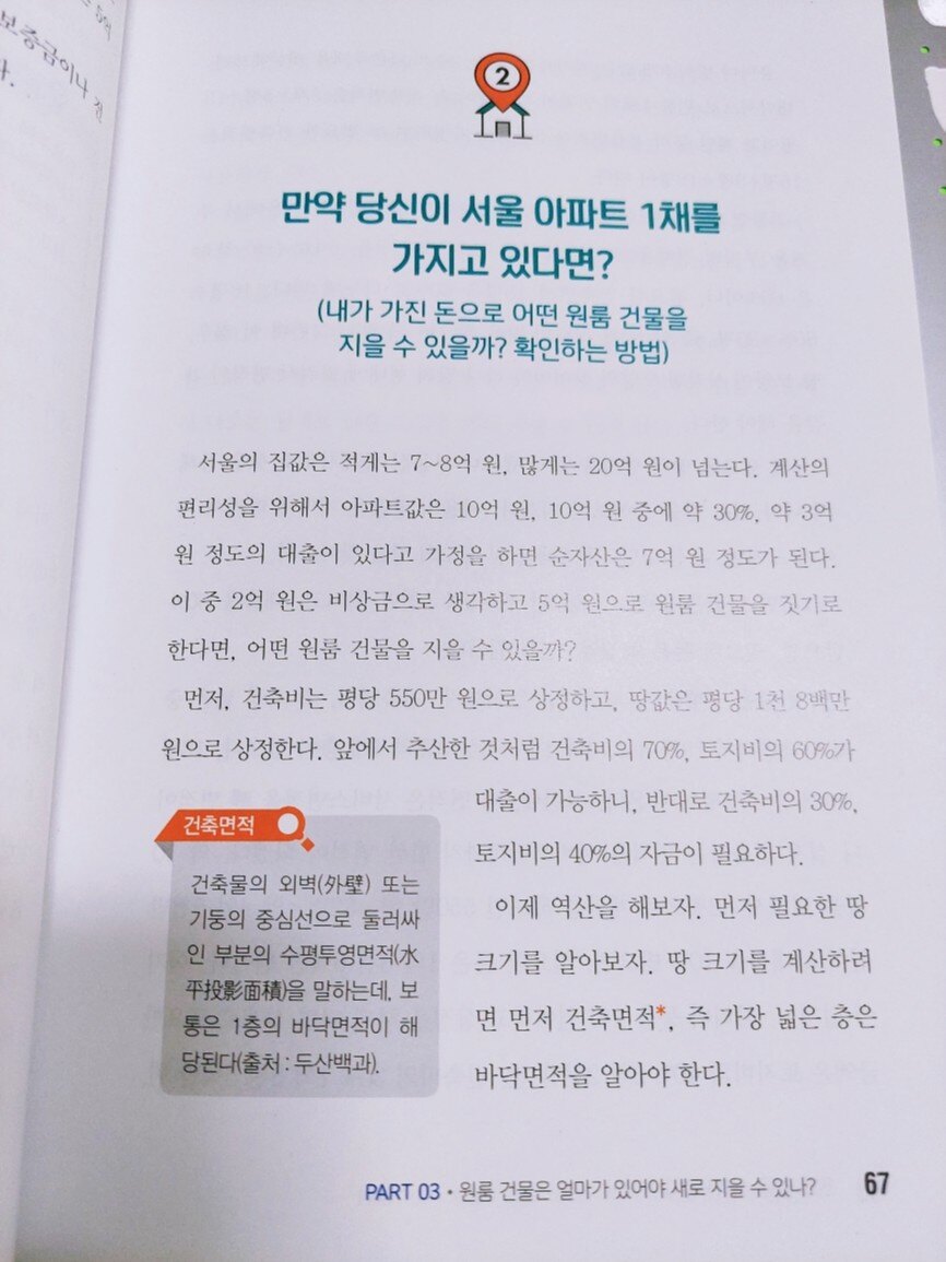 대출에 대한 지식과 건축 관련 법규 지식도 알려주는데 모르고 있던 건축법들이 있어서 꼼꼼하게 메모하며 읽었습니다