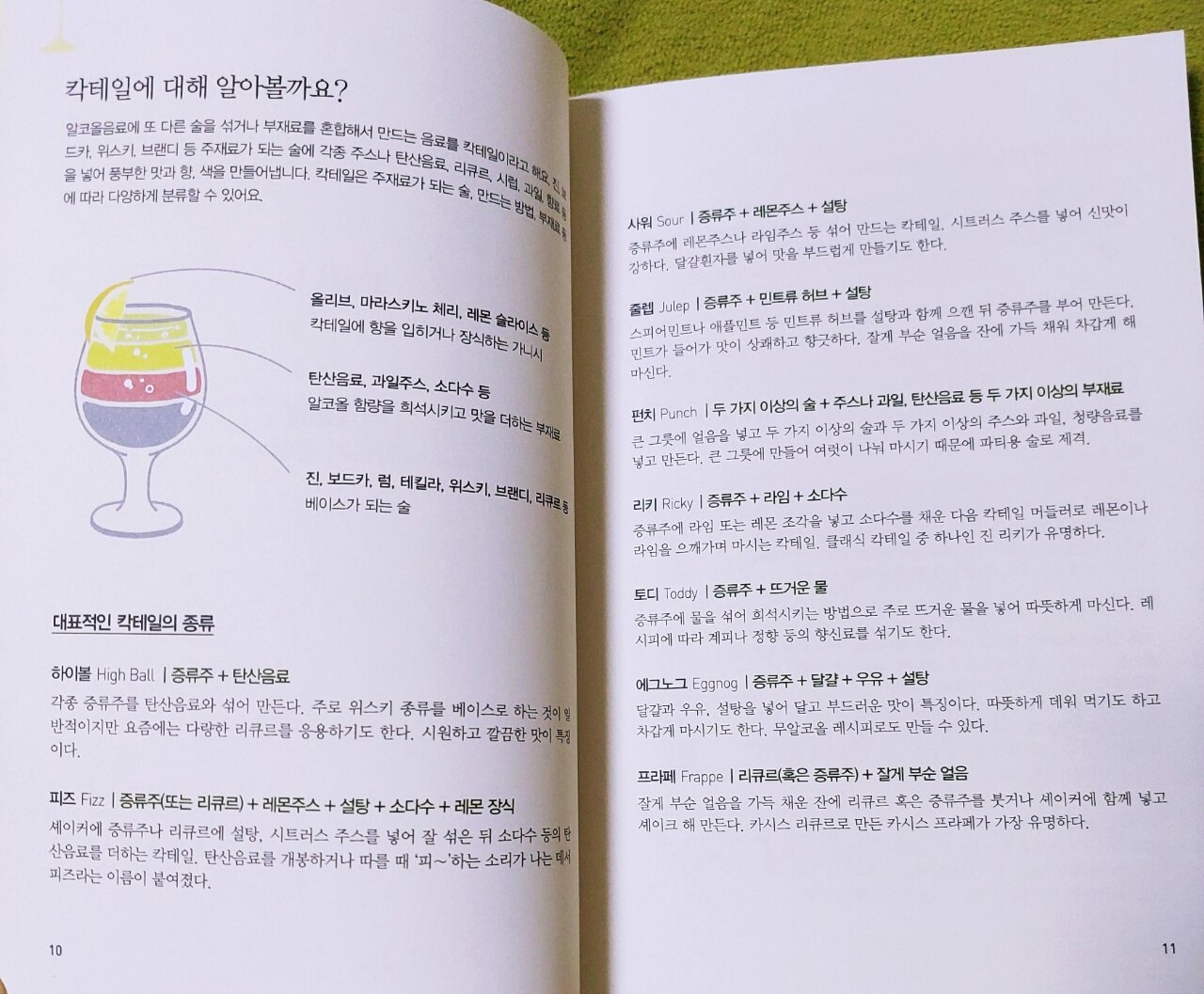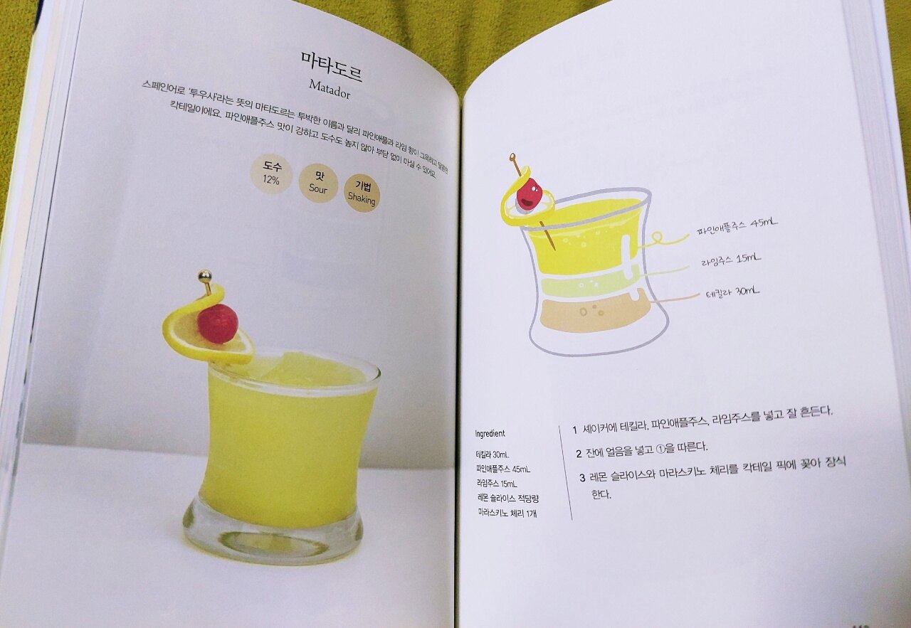 종류도 다양하고 색도 예쁜 칵테일 레시피가 배우고 싶었는데 마침 너무 좋은 책을 발견했습니다