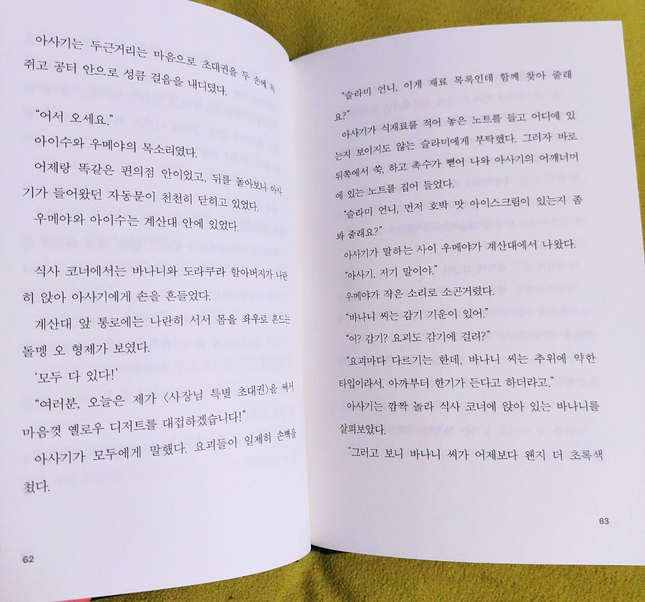 아사기가 만나는 등장인물들이 독특하지만 다정하고 따뜻한 마음을 가지고 있어서 책을 읽는내내 아사기도 저도 즐거웠습니다