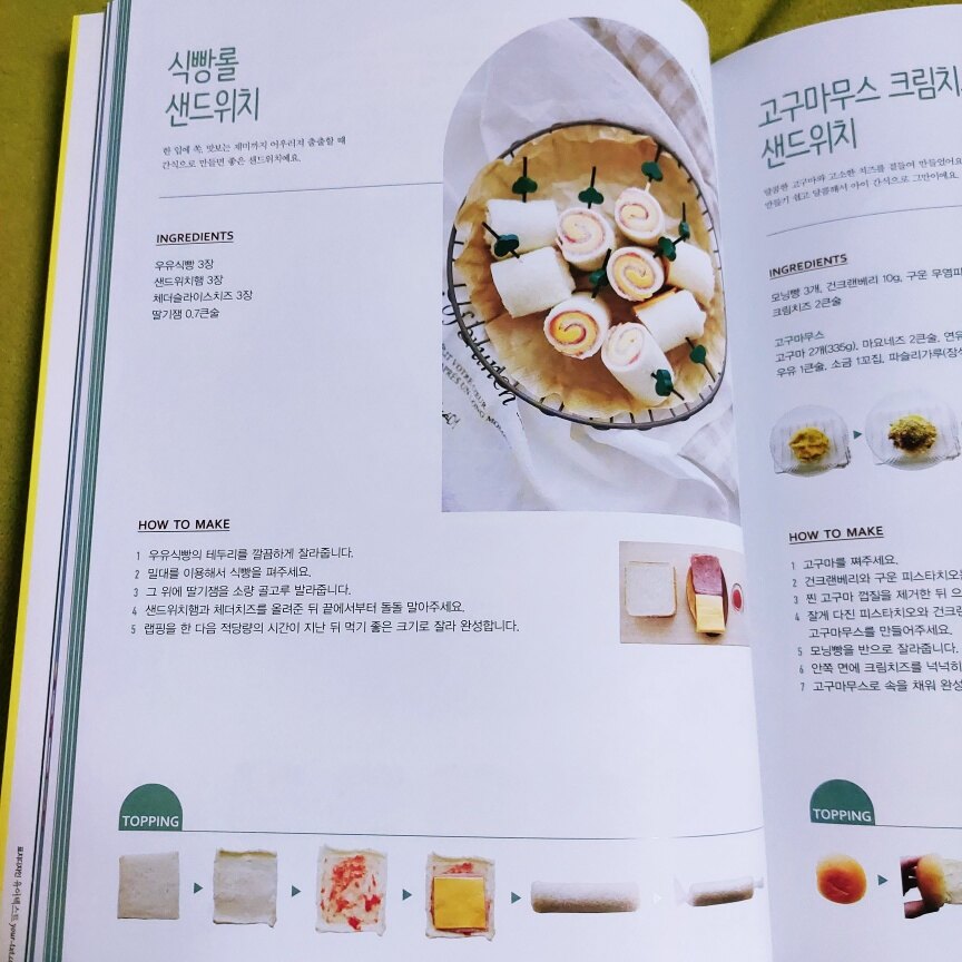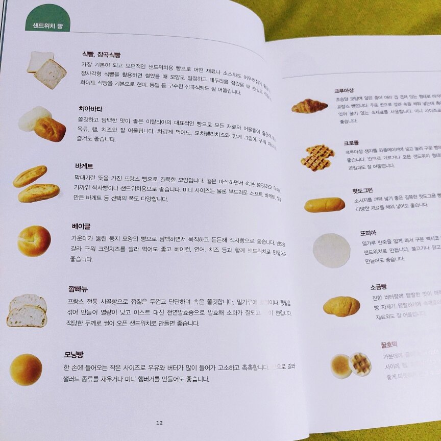 샌드위치를 만드는 기본 재료인 빵의 종류가 다양합니다 각 빵들의 특징과 어울리는 재료들이 간단하지만 잘 설명되어 있습니다 샌드위치에 필요한 토핑들도 종류별로 각각의 특징들이 잘 정리되어 있어서 이해가 잘됩니다 샌드위치 스프레드는 종류가 정말 많네요 소개해주는 스프레드는 만드는 레시피도 어렵지않고 간단해서 좋습니다 하나하나 도전해서 입에 맛있는걸 찾아봐야겠습니다 샌드위치에 들어가는 재료들을 하나하나 보고나니 취향별로 골라서 만들 수 있어 기대가 됩니다 제가 자주 만드는 식빵롤 샌드위치가 나오니 반갑네요 간단하고 만들기 쉽고 아이들이 좋아하는 간식이라 자주 만들어 준답니다 아이가 책을 보더니 먹고싶대서 후딱 만들어 줬어요 도시락으로도 싸줬었는데 요즘은 학교에서 도시락을 준비해주니 편하기도하고 아쉽기도합니다 샌드위치 고수 3인의 레시피가 90가지나 실려있는데 사진마다 너무 예쁘고 먹음직스러워서 먹고싶은걸 참느라 애먹었습니다 정말 다양한 레시피가 가득인데요 취향껏 재료를 바꾸기만해도 맛이 확 달라지니 만드는 재미도 먹는 재미도 있고 비주얼도 너무 예뻐요~~ 지인들 초대하거나 선물용으로 최고인거같아요 너무나 갖고싶은 책이었는데 내용을 보고나니 기대이상입니다 요리에 자신없는 저도 도전해볼 용기가 생기는 친절한 레시피들을 보니 감동이네요 이 책을 소장하시길 추천합니다 출판사로부터 도서를 제공받아 작성한 솔직 후기입니다