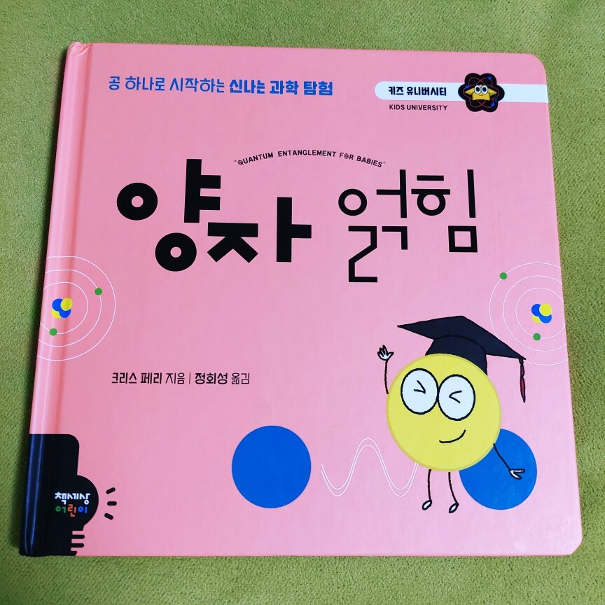공 하나로 시작하는 신나는 과학 탐험 : 키즈 유니버시티 과학 시리즈 21권중 다섯번째 양자얽힘입니다 현대 물리학의 중요한 주제 가운데 하나인 양자 얽힘의 기본 내용을 간단한 그림과 글로 설명하는 과학 그림책입니다 양자라는 단어가 아이들에게는 생소하기도하고 어려워보이는데요 초등저학년 아이들이 배우기에 어려울수도 있지만 과학을 좋아하는 아이라면 이해하기가 수월할거라 생각됩니다 과학이 어렵다고 생각하는 아이들도 알기 쉽게 물리학을 공 하나로 설명해준다니 이 책만의 매력이 있습니다 책의 제목을 보고 펼쳤을 때 글씨만 가득하면 아이들이 거부합니다 보기만해도 읽기 싫고 답답하거든요 하지만 키즈 유니버시티 과학시리즈는 표지부터 귀여워서 아이들 눈길을 끕니다 무슨 내용인지도 모르면서 무조건 읽기부터 합니다 책을 잘 안읽는 아이도 그림책은 좋아하거든요 이 책은 물리를 공으로 설명을 해줍니다 모든 공은 원자로 이루어져 있고 모든 원자는 입자로 이루어져 있고 입자들이 서로 얽혀있는걸 그림으로 표현해주니 아이들이 바로 이해를 합니다 퀴즈같기도 하고 게임같기도 한 설명 방식이 아이들의 호기심과 상상력을 자극하며 흥미를 이끌어냅니다 양자얽힘이 이렇게 간단하게 설명이 되다니 놀랍습니다 매번 아이들에게 알려줄때마다 어떻게 쉽게 설명할지 고민이었는데 한번에 해결해주네요 이 책을 아이들에게 추천합니다 어른들도 함께 읽어보세요~ 과학은 우리가 올바르게 알고 이해해야하는 중요한 미래의 원동력이니까요 출판사로부터 도서를 제공받아 작성한 솔직 후기입니다