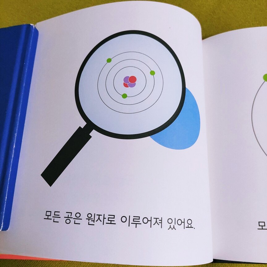 미국 아마존 어린이 과학 종합 분야 1위인 키즈 유니버시티 시리즈입니다 양자 물리학을 아이들이 이해하기 쉽게 그림으로 설명해주는 책입니다 공 하나로 양자 물리학을 어떻게 설명해줄지 궁금하네요 원자의 기본 구조인 양성자, 중성자, 전자를 그림으로 표현하니 이해가 훨씬 잘됩니다 전자는 에너지를 가지고 있고 에너지가 없는 전자는 없고 이 에너지는 양자화 되어있다고 알려줍니다 양자화란 말이 어렵게 느껴지지만 그림에선 너무 간단히 알려줍니다 양자화가 이런 뜻이었구나 이해하니 어렵지않고 재밌다고 아이가 좋아하네요 전자가 에너지를 얻으면 높은 곳으로 뛰어오를 수 있고 에너지를 잃으면 낮은 곳으로 내려온다고 합니다 이 에너지들도 모두 양자화 되어 있습니다 양자 물리학을 설명해주면 어렵다던 아이가 이 책으로 양자 물리학을 바로 이해했습니다 아이들에게 너무나 좋은 과학도서입니다 이 책을 아이들과 읽어보시길 추천합니다 출판사로부터 도서를 제공받아 작성한 솔직 후기입니다