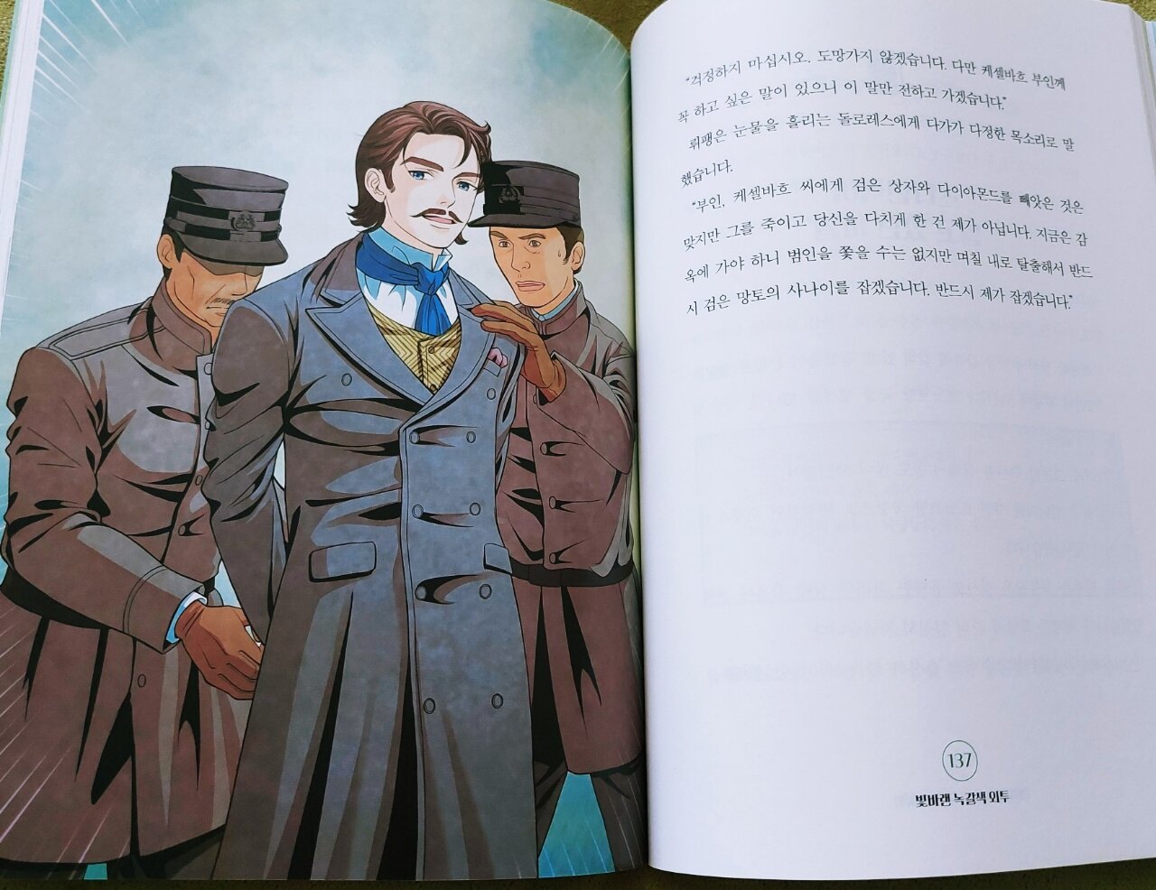 어린이 추리소설이지만 어른들이 읽어도 재밌는 아르센 뤼팽의 이야기입니다 각 권마다 내용이 달라서 이어서 보지않아도 재밌게 읽을 수 있는데요 등장인물 소개부터 흥미롭습니다 괴도 뤼팽이 사랑에 빠지다니요 과연 어떤 여인일까요 레이몽드란 여인을 보고 사랑에 빠진 뤼팽이 거절당하다니..게다가 레이몽드는 발메라 남작과 결혼을 한다고 나와요 주인공이 아니고 다른 남자와 연결이라니 읽기전부터 궁금해집니다 프랑스의 제일 유명한 도둑 아르센 뤼팽의 활약이 기대되네요책은 초반부터 몰입하게 됩니다 제브르 백작 저택에서 밤에 수상한 자들이 뭔가를 훔쳐가고 다발이 칼에 찔리고 총에 맞은 범인은 사라지고 큰일이 발생합니다 예심 판사가 도착하여 살펴봤지만 아무리 생각해도 답답합니다 훔쳐 간 것 같은데 잃어버린 물건은 없고,범인은 집 안 어딘가에 숨어 있는데 찾을 수 없는 고약하고 재미없는 사건이라고 이야기할 때 책을 읽는 저도 궁금했습니다 어떤 이야기가 나올지 흥미진진합니다 주인공만큼이나 비중이 큰 보트를레의 등장도 예사롭지않습니다 와..보트를레의 추리는 너무 멋진대요 과연 아르센 뤼팽에 맞서 뤼팽보다 먼저 찾아낼 수 있을까요? 둘의 두뇌싸움이 재밌고 반전에 반전이 계속됩니다 한참 재밌게 읽다가 마지막에 깜짝 놀랐는데요 부디 그게 끝이아니고 눈속임이면 좋겠어요 뤼팽에게 찾아온 행복이 부디 깨지지않길바라며 4권을 빨리 읽어봐야겠습니다 어린이 소설이라 중간중간 그림이 있어서 좋았고요 아이들이 그림을 통해 글의 이해도가 높아지고 더 재밌게 볼 수 있습니다 내용도 재밌고 종이 재질도 좋아서 소장가치가 높으니 아이들과 읽어보시길 추천합니다 출판사로부터 도서를 제공받아 작성한 솔직 후기입니다