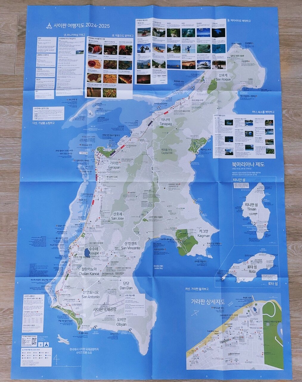 가라판,티니안 섬,로타 섬,사이판 본섬 등 사이판을 여행하기 위한 지도 1장(A1접지)
