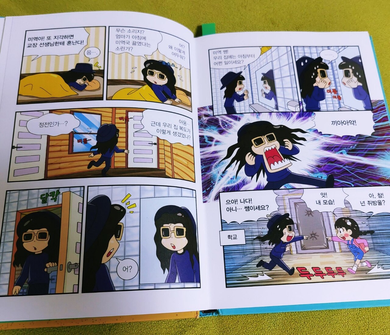 아이들이 좋아하는 방울이TV를 만화책으로 볼 수 있다니 너무 신나는데요~!! 기다리고 기다리던 ‘방울이 TV 딸랑예술학교’ 4권이 나왔어요!!!!! 1,2,3권도 재밌게 봐서 아이들이 4권을 기다렸는데 책을 받자마자 좋아하네요~ 딸랑예술학교에는 방울이,조이서, 김또라, 매석두, 김낚시, 박피티, 물미역 선생님이 등장합니다 각각의 캐릭터가 모두 귀엽고 재밌답니다 유튜브 채널로 보다 책으로 보니 아이들은 방울이와 친구들이 반갑나봐요 유튜브에서 본 영상을 이야기를 하며 어찌나 쫑알쫑알 설명해주는지 저도 같이 한참 웃었네요 재밌는 에피소드만 모아놨다더니 책 읽는동안 아이들 웃음소리가 끊이지않습니다 각각의 이야기는 재미와 웃음을 주는데요 생각이 기발해서 놀라고 그림도 귀여워서 보는 재미가 있습니다 이야기들은 친구들이 호기심을 갖고 궁금해할만한 일들을 재밌게 표현했고요 뒷부분에는 요즘 핫한 MBTI별 유형과 미로찾기,고백에 성공하는 방법,사다리타기 등등 아이들이 관심갖고 좋아할 이야기들이 들어 있어요 방울이와 친구들도 웃긴데 물미역선생님 너무 웃겨요 물미역선생님 선글라스 벗은 모습도 궁금했는데 결국 안보여주네요 ㅎㅎ 아이들과 웃으며 즐겁게 보았습니다 이 책을 읽어보시길 추천합니다 출판사로부터 도서를 제공받아 작성한 솔직 후기입니다