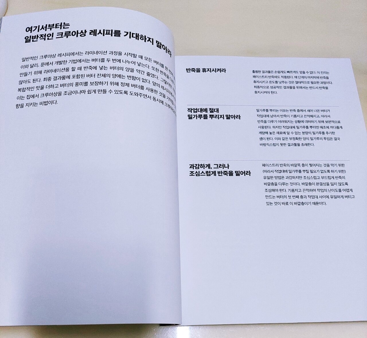 북유럽카페의 소개로 출판사로부터 도서를 제공받아 작성한 솔직 후기입니다 "룬 크루아상 레시피북"은 룬의 설립자 케이트 리드부터 대단합니다 항공 우주 공학자에서 최고의 크루아상을 만들기까지 그녀의 천부적인 재능이 돋보입니다 공학과 예술의 결합으로 탄생한 크루아상의 시작과 앞으로가 기대되는 호주 최고 로컬베이커리의 베이킹 노하우를 배울 수 있다니 감동이네요 자신의 인생을 걸고 포기하지 않고 맞서서 최고의 자리에 오른 그녀의 노력에서 배울 점이 많습니다 베이킹 레시피에 인생이 담겨 있습니다 룬의 크루아상은 뉴욕타임스 월드 베스트에 선정되었으며, 전 세계적으로 유명하고 현재는 호주 전역에 7개의 매장으로 확장하며 글로벌 핫 플레이스로 등극했다니 호주에 가게 되면 꼭 방문하고 싶습니다 현지에서 갓 구운 크루아상은 얼마나 감동일까요 간단한 베이킹은 취미로 종종 하는데 아직 서투르다 보니 만들기가 까다로운 크루아상은 가정에서 쉽게 만들 수가 없었습니다 단계별로 신경 쓸 게 많고 손이 많이 가기에 만들어진 생지를 구입하여 굽거나 사서 먹었는데 항상 도전해 보고 싶었습니다 이 책을 읽고 나서 깨달은 건 책에서 알려주는 중요한 원칙만 지킨다면 가정에서도 만들기 수월하고 창업으로도 좋다는 겁니다 만드는 과정이 상세하고 사진으로 자세히 알려주니 따라 하기가 편하고 이해가 잘됩니다 만드는 과정만 잘 숙지했다면 하나의 반죽으로 5~8개 페이스트리를 만들 수 있다니 좀 더 디테일한 차이를 배우고 남은 반죽을 활용하는 레시피까지 마스터할 수 있습니다 홈베이킹의 기본인 도구, 반죽을 제대로 익힌 후 책에서 알려주는 다양한 베이킹 레시피를 보고 하루 전 준비 과정부터 완성까지 완벽하게 배우며 크루아상의 변화가 색다르고 매력적이란 걸 느낄 수 있습니다 예쁘고 먹음직스러운 빵들을 보며 예술 작품을 보는 것 같았고 베이킹 레시피북으로 너무나 완벽했습니다 베이킹하시는 분들에게 적극 추천합니다