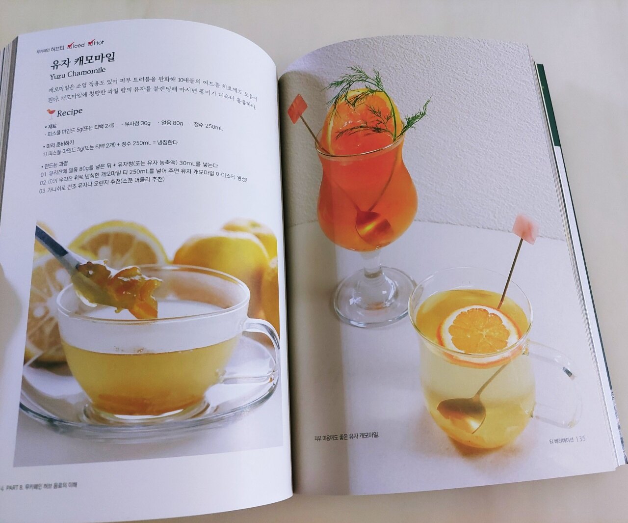 오랜 시간 커피를 즐겨 마시다 보니 카페인 섭취가 신경 쓰여서 디카페인으로 마시고 있다가 다양한 티를 접하면서 그 매력에 빠졌습니다 아침에 커피부터 찾았었는데 요즘은 집안에 은은하게 퍼지는 티의 향이 좋아서 그날그날 기분에 따라 선택합니다 녹차, 꽃차, 루이보스, 히비스커스, 홍차, 허브티, 캐모마일, 자몽티 등 시중에서 쉽게 구할 수 있고 대중적인 티들을 마시고 있는데 티 메뉴가 제가 생각했던 것보다 많아서 놀랐습니다 특별함 없이 마시기만 하는 것보다 티에 대해 좀 더 깊이 알고 지식을 쌓으며 눈도 즐겁고 맛있게 마실 수 있는 다양한 레시피를 배워보려고 "티 베리에이션"을 읽었는데 굉장하네요 솔직히 한 장 한 장 넘기며 놀랐고 가정에서 만들어 먹기에도 어렵지 않아서 너무 좋았습니다 레시피를 배우기 전에 티의 유래와 "티 베리에이션"의 의미를 이해하고 기본 지식을 쌓은 후 티를 종류별로 파악하여 각각의 특징을 알고 티를 우리는 방식부터 우리는 조건, 자주 사용되는 부재료 등을 배우며 티에 대해 알아가는 과정이 흥미로웠습니다 특히 티 시럽이 궁금했는데 책의 앞부분에 티 시럽의 종류와 특징이 읽기 편하게 설명되어 이해하기 쉬웠고 사진이 너무 예쁘게 수록되어 보는 즐거움이 있습니다 상큼하고 먹음직스러운 사진들만 봐도 입맛을 돋우며 티에 더 관심이 갑니다 티마다 가진 효능을 읽으며 가족들에게 어울리는 티를 골라봤습니다 자신에게 좋은 티를 찾아 선별하는 과정이 좋았고 그날의 기분이나 분위기에 어울리는 티도 고르는 게 재밌었습니다 "홍차 언니"의 112종 실전 레시피를 보면서 "티 베리에이션"에 푹 빠졌습니다 눈으로 보는 즐거움 때문에 칵테일을 좋아하는데 칵테일보다 더 멋지네요 레시피의 부재료로 쓰이는 벽담표설이 중국 녹차라는 것도 배우고 레시피를 보며 하나하나 배우는 게 너무 재밌습니다 제가 좋아하는 맛 중에서 간단한 재료로 만들 수 있는 것부터 시도해 봤습니다 예쁜 잔에 예쁜 색이 입혀지니 기분도 좋아지고 마음이 편안해집니다 티에 관심이 있고 좋아하신다면 이 책을 꼭 읽어보시길 추천합니다 좋은 책 감사히 읽었습니다 북유럽카페의 소개로 출판사로부터 도서를 제공받아 작성한 솔직 후기입니다