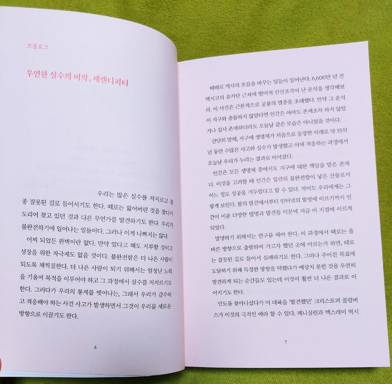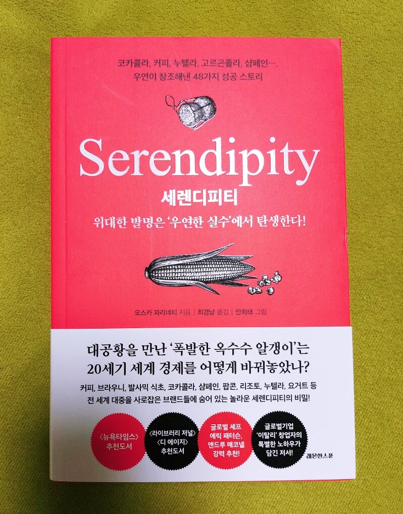 우연한 발명, 발견이 대박을 낸 48가지 성공 스토리라니 궁금하고 기대가 많이 되었습니다 우리 주변에서 흔히 볼 수 있는 것들이라 더 흥미로웠습니다 발명의 유래를 안다는 건 매우 의미 있고 특별한 일인데요 모든 것에는 탄생 배경이 있지만 이 책에서 다루는 건 너무나 유명하고 성공적인 발명들입니다 좋아해서 매일 마시는 커피의 유래가 재밌습니다 고지대에서 키우는 염소들이 어떤 열매를 먹은 후 훨씬 기분 좋게 뛰어다니자 양치기는 궁금해서 직접 먹어보기로 합니다 붉은 베리를 구웠다는 건 생으로는 먹을 수 없었던 거겠죠 구우니 좋은 향이 났고 가루를 만들어 뜨거운 물에 섞었다니 커피의 탄생 과정이 흥미롭네요 인간의 작은 호기심에서 생겨난 수많은 발명들은 놀랍기도 하고 신기하기도 합니다 아프리카에서 시작된 커피는 지금의 커피로 되기까지 수많은 우여곡절을 거쳤습니다 커피를 악마의 물이라 칭했던 성직자들을 보며 옛 교회에서 마녀니 뭐니 하며 사람들을 핍박했던 게 떠오르네요 전세계인에게 사랑받는 커피의 역사 재밌게 읽었습니다 팝콘을 정신 나간 식용 폭탄이라니 잘 어울리는 표현입니다 팝콘은 어떻게 탄생했을지 궁금했는데요 일반 음식과 달리 말린 옥수수 알갱이가 터지는 거라 신기했는데 이것 역시 누군가의 실수로 만들어졌습니다 약 1만년 전에 원시 형태의 옥수수 알갱이를 타오르는 잿더미에 떨어뜨린 것이 최초의 폭발이었다니 생각보다 오래전이라 놀랐습니다 팝콘으로 적을 놀라게 하기도 하고 식용 장식품을 만들고 이를 먹기도 했다니 흥미롭네요 과거의 이야기는 언제나 재밌습니다 지금도 어디에선가 세렌디피티가 일어나고 있고 미래에 획기적인 사건으로 기록될 것입니다 저자는 실제 유명한 인물들과의 인터뷰로 보다 정확한 사실을 전달함과 동시에 독자에게 자신의 생각을 곁들여 설명해 줍니다 모든 일은 우연에서 시작하듯이 책을 읽을수록 주변을 더 살피고 열린 시야로 바라봐야겠습니다 무한한 가능성을 지닌 세상이 앞으로 어떻게 변할지 기대가 됩니다 이 책을 읽어보시길 추천합니다 북유럽카페의 소개로 출판사로부터 도서를 제공받아 작성한 솔직 후기입니다