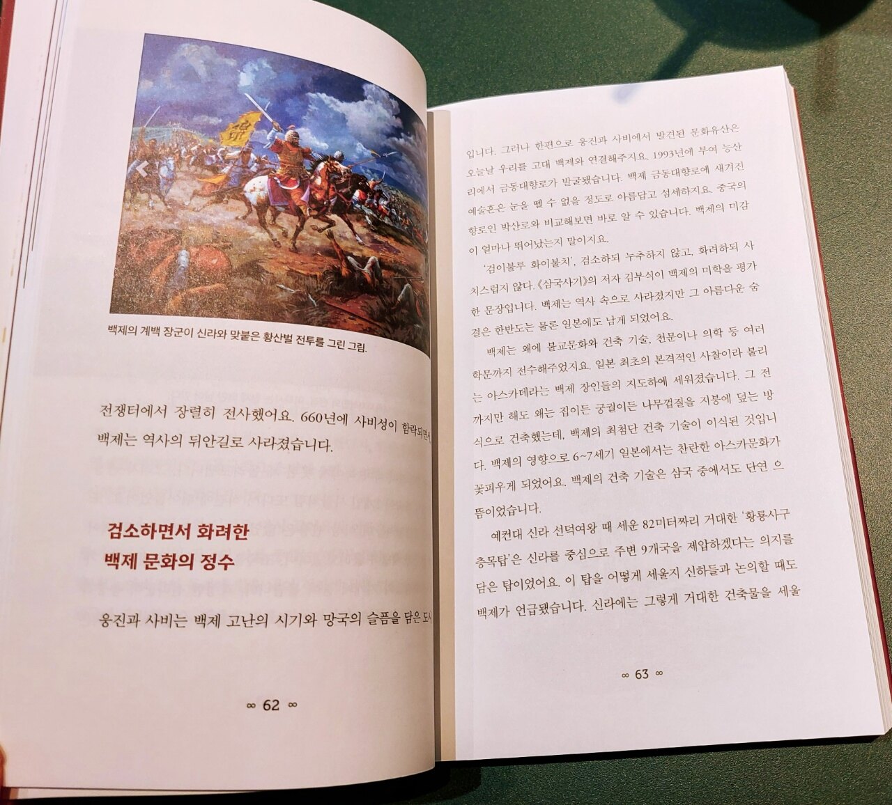 한국사도 자세히 들여다보면 방대한 양과 복잡한 역사로 읽기가 쉽지 않습니다 크고 작은 사건들이 얽혀 수많은 역사 속 인물들이 등장하기에 나라별로 읽다 보면 양이 많아서 외우기도 힘들고 잘 안 읽게 됩니다 어른들도 힘드니 아이들은 한국사가 더 어렵겠죠 그래서 꼭 알아야 되는 내용들로만 구성된 <요즘 어른을 위한 최소한의 한국사>는 읽어보고 싶었습니다 공부하는 아이들에게 설명해 주기도 좋고 저도 역사를 계속 배우고 싶기에 이 책이 반가웠습니다 역사의 가장 기본은 시대별 흐름입니다 시간의 순서에 맞게 큰 틀을 잡고 읽기 시작하면 세세한 부분까지 기억하기 쉽고 이해도 잘됩니다 책의 처음에 한국사 전체 연표가 나옵니다 이 연표를 보면서 역사 속 나라들을 연도별로 비교하며 기억하고 책을 읽었습니다 학교 다닐 때 노래로 외워서 기억이 나기에 읽기가 더 편했습니다 알고 있는 사실에서 좀 더 깊게 들어가니 흥미롭고 재미가 있습니다 우리나라 역사의 시작은 고조선입니다 단군신화를 모르는 사람이 없을 정도로 유명한 우리 역사의 시작은 신화를 통해 좀 더 경이롭고 위대한 느낌을 줍니다 시간에 따라 역사가 어떻게 변해왔는지를 읽으며 각 국가들의 특징을 알고 그 시대의 문화와 사람들의 생활환경을 배울 수 있습니다 전쟁이 흔했기에 국가의 설립과 멸망의 과정이 반복되었고 그 속에서 살아남기 위해 치열하게 싸운 선조들의 삶에서 지혜와 교훈을 배웁니다 책에는 역사를 이해하는 데 도움이 되는 그림들이 많이 수록되어 있습니다 그림을 보며 당시 상황을 보다 자세하게 알 수 있고 어떤 옷을 입었는지 왕과 신하의 모습을 통해 나라마다 가진 특징을 알 수 있어서 좋았습니다 전투를 표현한 그림은 보기만 해도 사람들의 표정과 동작에서 치열함이 느껴집니다 한 권에 담은 한국사여서 과연 그 많은 내용을 어떻게 담았을지 궁금했고 기대가 되었는데요 설명이 너무 잘 되어 있어서 기대 이상으로 재미있었고 쉽게 읽었습니다 이 책의 내용만 이해하고 외워도 한국사의 전반적인 걸 다 알고 있다고 해도 무방합니다 한국사를 어렵다고 생각하지 말고 이 책으로 마스터하시길 추천합니다 이 책은 꼭 읽어보세요 아이들 수능 대비 도서로도 적극 추천합니다 북유럽카페의 소개로 출판사로부터 도서를 제공받아 작성한 솔직 후기입니다
