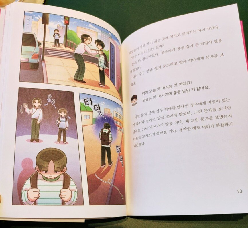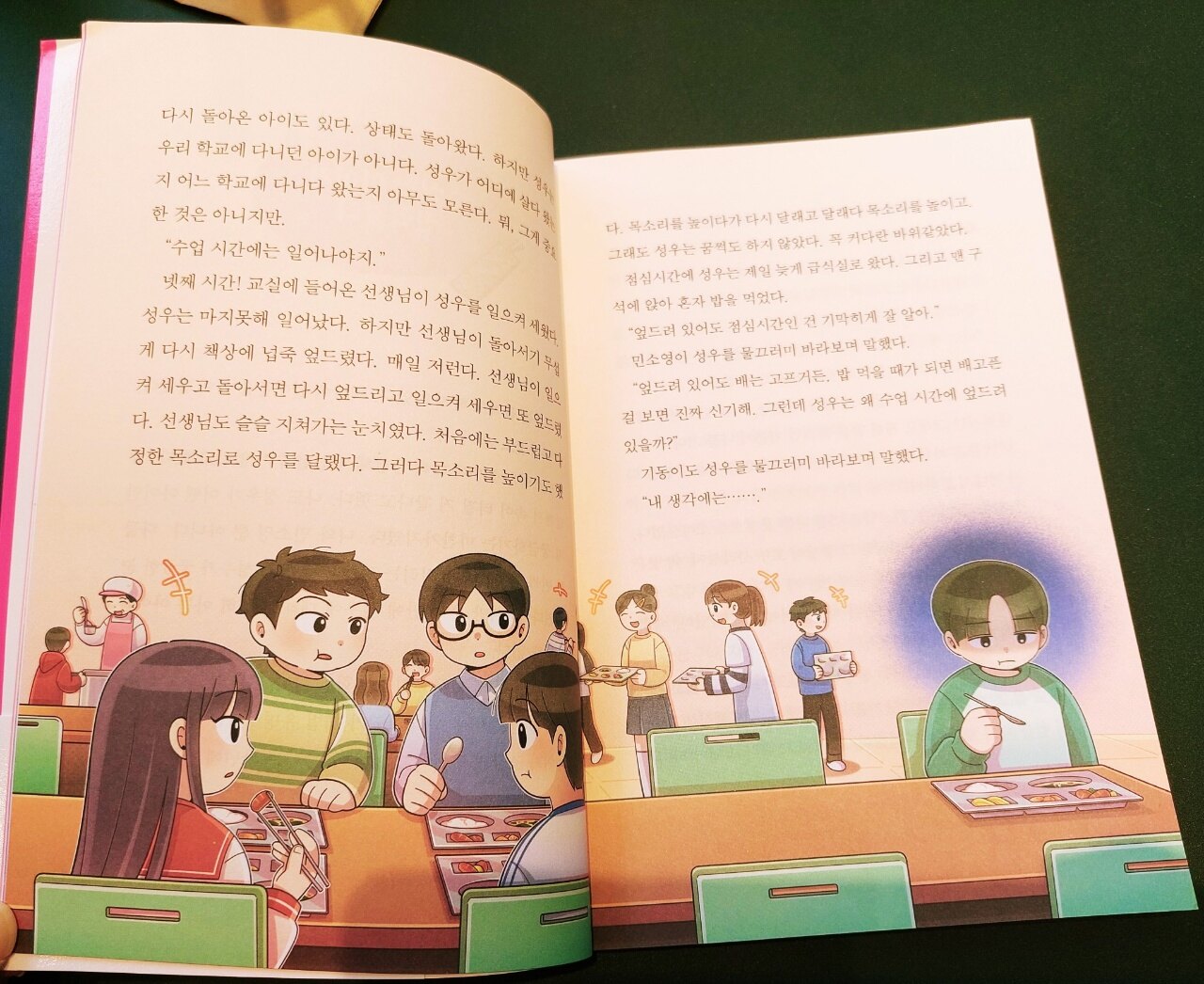 학교에서의 일들은 아이들이 공감할 수 있는 일상의 내용으로 언제 어디서나 일어날 수 있는 일입니다 아이들의 사소한 말이 전해지며 그 과정에서 변하다가 있지도 않은 새로운 일이 되어버리고 그 속에서 상처받는 아이가 생깁니다 이 책은 아이들의 감정선이 잘 보이는 작품으로 읽는 내내 아이들이 어떤 선택을 하는지 지켜보는 재미가 있습니다 친구의 마음을 들여다보고 배려하는 마음을 배울 수 있는 책이라 좋았습니다 친구가 중요한 나이라 더 와닿는 내용입니다 전학을 온 성우는 말도 없고 자주 엎드려 있는 아이입니다 의욕도 없고 친구도 없고 학교 오는 게 힘들어 보이는 성우에게 태석이는 자꾸 관심이 갑니다 사소한 일이 커져 성우가 상처를 받고 그 속에서 아이들은 각자 자신의 의견을 말하지만 정작 성우의 마음을 들여다보는 아이는 없습니다 태석이는 무관심과 수동적인 태도를 보이다 양심의 가책을 느끼고 용기를 내어 선생님께 고백을 합니다 태석이의 말을 듣고 선생님이 해주시는 이야기도 좋았고 아이들을 믿고 기다려주신 것도 좋았습니다 태석이와 친구들이 성우의 아픈 마음을 치유해 주면 좋겠네요 서로에게 다가가며 각자의 방법으로 친해지는 모습이 좋았고 친구들 관계의 소중함을 느낄 수 있는 책이었습니다 저도 아이들도 재밌게 읽었습니다 이 책을 아이들과 함께 읽어보시길 추천합니다 출판사로부터 도서를 제공받아 작성한 솔직 후기입니다
