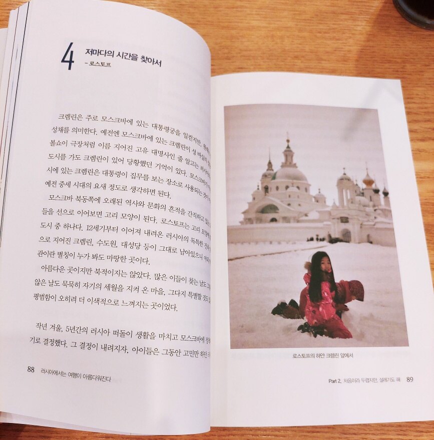 코로나로 전 세계가 고통받던 시간이 끝나나 싶었는데 전쟁이 난 러시아로 모두가 충격에 휩싸입니다 요즘 세상에 전쟁이라니 생각도 못 했는데 국가 간의 이해관계가 충돌하며 양보 없이 일어난 전쟁은 국민들을 공포로 몰아가며 죄 없는 희생을 만들어 냅니다 슬프고 안타깝고 무서운 이 상황에서 러시아 국민들은 고립되어 집 밖으로 나가지도 못하고 갇힌 생활을 합니다 우크라이나 국민들도 러시아 국민들도 전쟁이란 공포의 희생양이 되어 너무나 안타깝습니다 전쟁이 시작되고 3달 후 밖으로 나갈 수 있게 되었지만 여전히 한발 내딛는 게 조심스럽습니다 하지만 그 속에서도 힘을 내고 나아가는 사람들의 용기와 희망을 볼 수 있습니다 평범한 일상들이 너무나 소중했다는 걸 책을 읽는 동안 느끼며 마음이 뭉클했습니다 러시아에서 10년을 살았지만 여전히 이방인이라는 느낌으로 온전히 스며들지 못하는 저자의 가족이지만 러시아를 대하는 마음은 진심이란 걸 느낍니다 아이들과 함께 러시아의 곳곳을 여행하며 매 순간을 기억하고 러시아의 아름다움을 눈에 담으며 앞으로 나아가는 저자의 모습에서 감동을 받았습니다 저자가 여행하며 소개해 주는 러시아의 모습은 전쟁과는 정반대의 아름다움과 여유, 따스함이 있습니다 아이들의 해맑은 미소를 보며 저렇게 사는 삶은 얼마나 멋질까 생각합니다 전쟁이 없는 러시아에서의 삶은 발길 닿는 곳마다 동화 속 같습니다 드넓은 산 위의 평지와 눈이 가득한 만년설 꼭대기, 영화 속 풍경 같은 블라디미르, 끝이 보이지 않는 눈 위를 걷는 아이들을 보니 겨울 왕국의 요정들 같습니다 러시아가 이렇게 낭만적이고 아름다운 걸 이제 알았네요 어느 나라에 살든 저자가 가족을 위해 해주는 모든 것들은 누구나 하지 못하는 겁니다 책을 읽으며 아이들에게 미안한 마음이 드네요 공부가 우선인 아이들이 저렇게 드넓은 평원을 달리고 눈 밭에서 뒹굴고 여행을 다니며 행복한 추억을 만들 기회가 얼마나 있었을까요 전쟁 속에서도 아이들에게 행복을 느끼는 해주려는 저자의 마음에 저는 만감이 교차하며 많은 것을 느낍니다 행복을 놓치고 앞만 보고 달린 것 같습니다 책을 읽으며 이렇게 가슴이 뭉클한 적이 있었나.. 읽는 내내 너무 좋았습니다 아이들이 부모의 뒷모습을 보며 자라는데 저자의 아이들은 너무나 좋은 부모를 보며 성장하고 있네요 사랑과 행복이 충만하여 독자에게 깊은 감동을 주는 이 책을 읽고 저도 마음이 벅차올랐습니다 러시아의 낭만과 가족의 행복을 느낄 수 있는 이 책을 읽어보시길 적극 추천합니다 좋은 책 출간해 주셔서 감사합니다 북유럽카페의 소개로 출판사로부터 도서를 제공받아 작성한 솔직 후기입니다