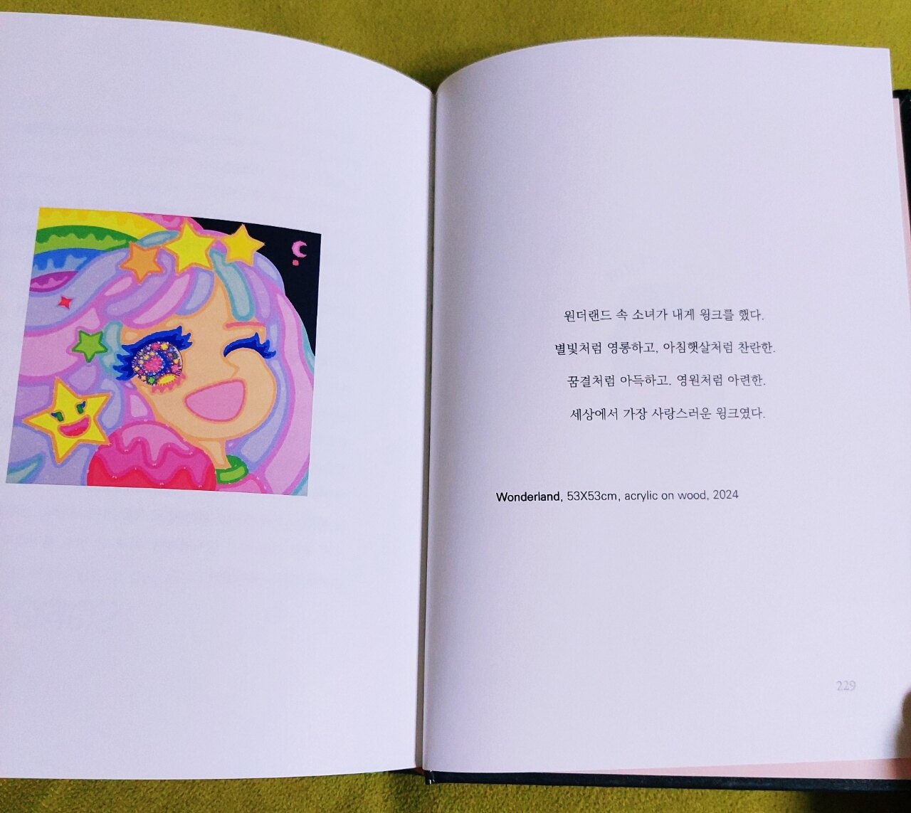 상상이 현실이 된다면 어떨까요 한때는 상상도 많이 하고 하고 싶은 것도 많았는데 어른이 되니 그토록 좋아해서 모았던 것들도 꿈꾸던 것들도 즐거웠던 것들도 어느 순간 가치를 잃습니다 점점 사는 게 지치고 버겁고 책임져야 할 일들만 많아지니 여유도 없습니다 꿈꾸던 소녀는 사라지고 하루하루 버티기 바쁜 작아진 어른만 남았습니다 시간이 갈수록 높아지는 현실의 벽은 스스로를 작아지게 만드는데요 이런 삶 속에서 동심을 떠올리며 산다는 건 생각도 못 했는데 과연 어린 시절 순수했던 마음을 되찾을 수 있을까요 이 책은 화려하고 예쁜 그림으로 눈길을 사로잡고 모든 그림 속에는 소녀가 행복하게 웃고 있습니다 보기만 해도 기분이 좋아지는 그림입니다 동화 속으로 들어와 있는 착각이 들 만큼 그림들은 강렬하고 강한 느낌을 주며 저도 모르게 그림 속으로 빠져듭니다 전시회 준비로 바쁜 나날을 보내던 작가 사라는 원더랜드의 마지막 작품을 마무리하던 중 잠시 잠이 듭니다 정체 모를 소리에 깨보니 그동안 공들인 작품들이 다 사라져 버렸습니다 너무 놀란 상황에 사라는 당황했고 목소리의 주인공인 소녀의 실루엣에 손이 닿는 순간 정신을 잃고 맙니다 다시 깨어나 들은 소녀의 이야기는 믿기지 않는 신기한 일이었습니다 사라가 만든 꿈의 공간 원더랜드가 4차원의 세계에 실제로 존재한다니요 그런데 원더랜드가 엉망진창이 되어 사라의 도움이 필요하다고 합니다 어떤 일이 벌어진 걸까요 사라는 소녀의 눈을 통해 원더랜드로 갑니다 원더랜드의 특별한 시간은 멈춰 있습니다 발을 들인 순간 영원히 지금 이 순간이 지속되어 나이를 먹지 않습니다 이곳에서 사라는 상상의 나래를 펼치며 소녀의 눈을 통해 원더랜드를 보았습니다 수많은 빛과 컬러로 빛나는 환상적인 원더랜드에서 일어난 일들을 보고 들으며 행복한 원더랜드로 되돌리기 위해 노력합니다 외눈박이 몬스터의 이야기를 들어주고 마음을 다독여주니 주변이 행복으로 가득해집니다 책의 문장만 읽어도 실제로 보이는듯한 착각이 드네요 상상만으로도 너무 예쁩니다 책은 예쁜 그림뿐만 아니라 내용도 예뻐서 읽는 즐거움이 있습니다 작가의 모습이 이입된 광대 몬스터에게 들려주는 이야기는 작가 본인이 그 당시에 듣고 싶었던 이야기가 아닐까요 작가의 위로에 행복해지는 광대 몬스터를 보며 누구에게나 있었던 순수하고 맑았던 동심의 세계를 다시 떠올려 봅니다 행복이란 주관적이지만 노력하면 행복이 이루어지겠지요 어쩌면 바로 옆에 있는 행복을 모르고 있는 건 아닐까요 삶이 피곤하다 느낄 때 이 책이 위로가 되어줄 것입니다 이 책을 읽어보시길 추천합니다 북유럽카페의 소개로 출판사로부터 도서를 제공받아 작성한 솔직 후기입니다