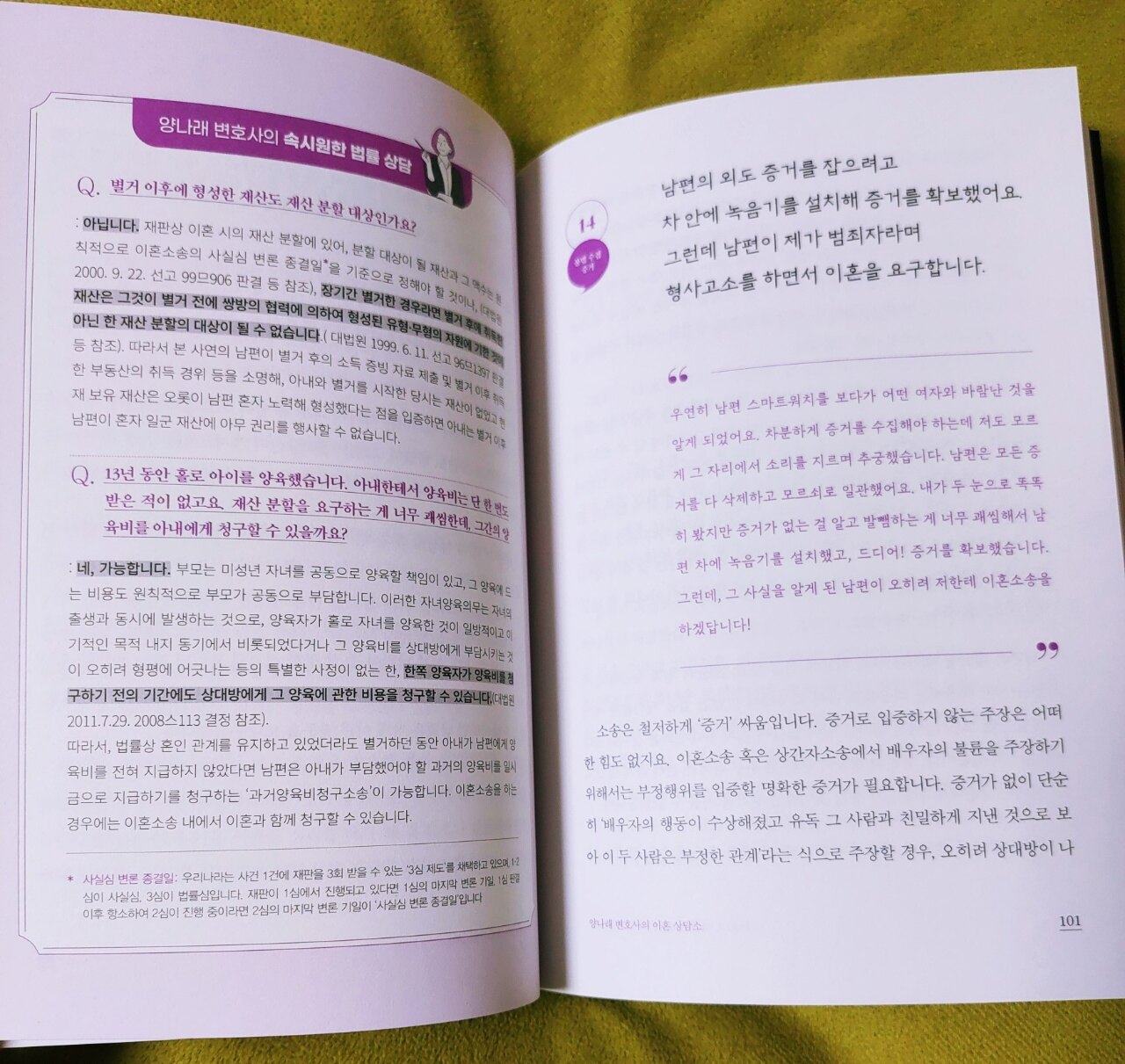 실제 이혼 사례들이 궁금하고 어떻게 대처했는지 알고 싶어서 <양나래 변호사의 이혼 상담소>를 읽어 보았습니다